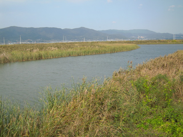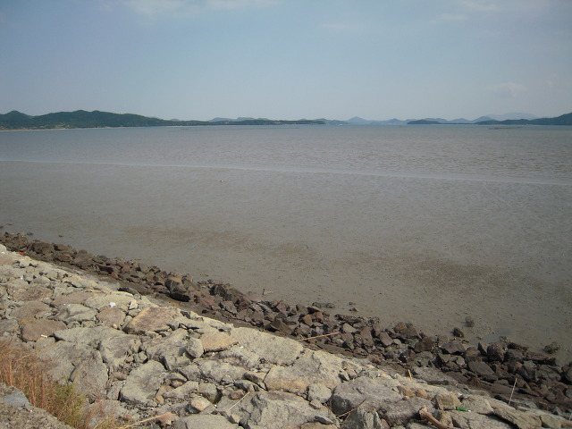둑방길에 올라 바다쪽을 바라봤습니다.