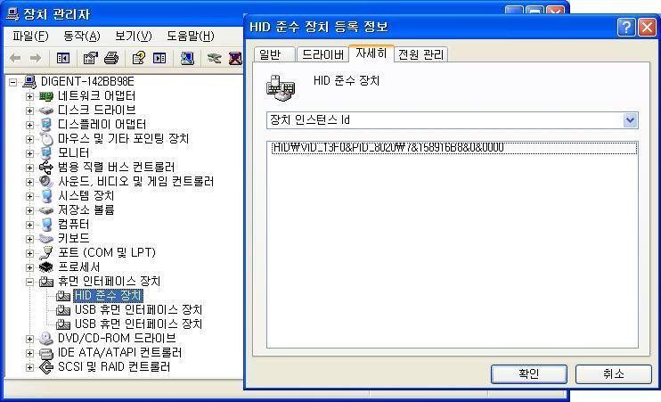 그림과 같이 장치관리자에서 장치에 마우스를 놓고 오른쪽 버튼을 눌러 장치 등록정보를 보면 알 수 있습니다.