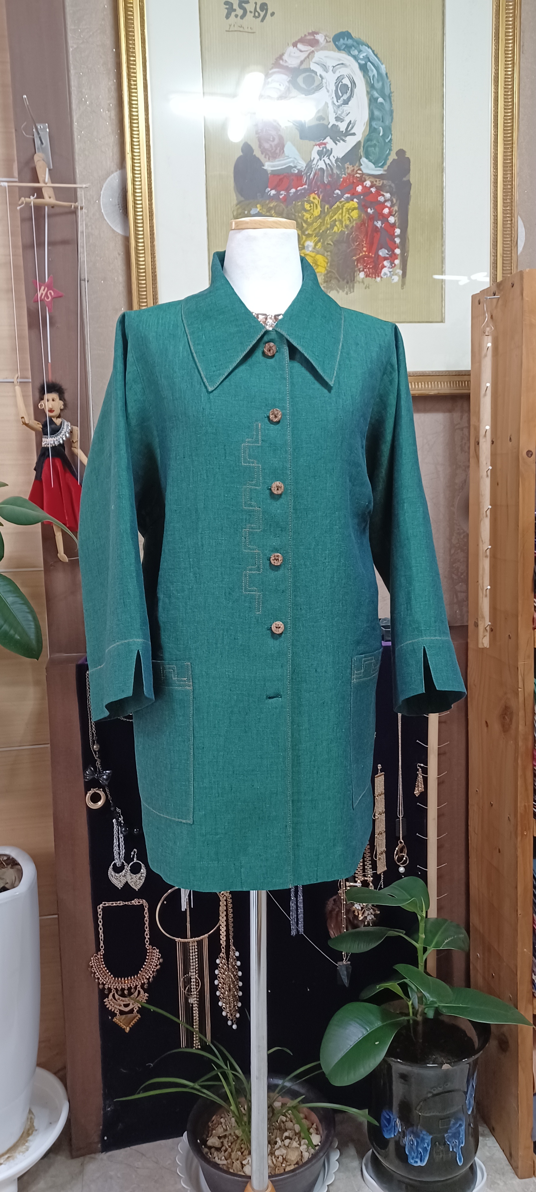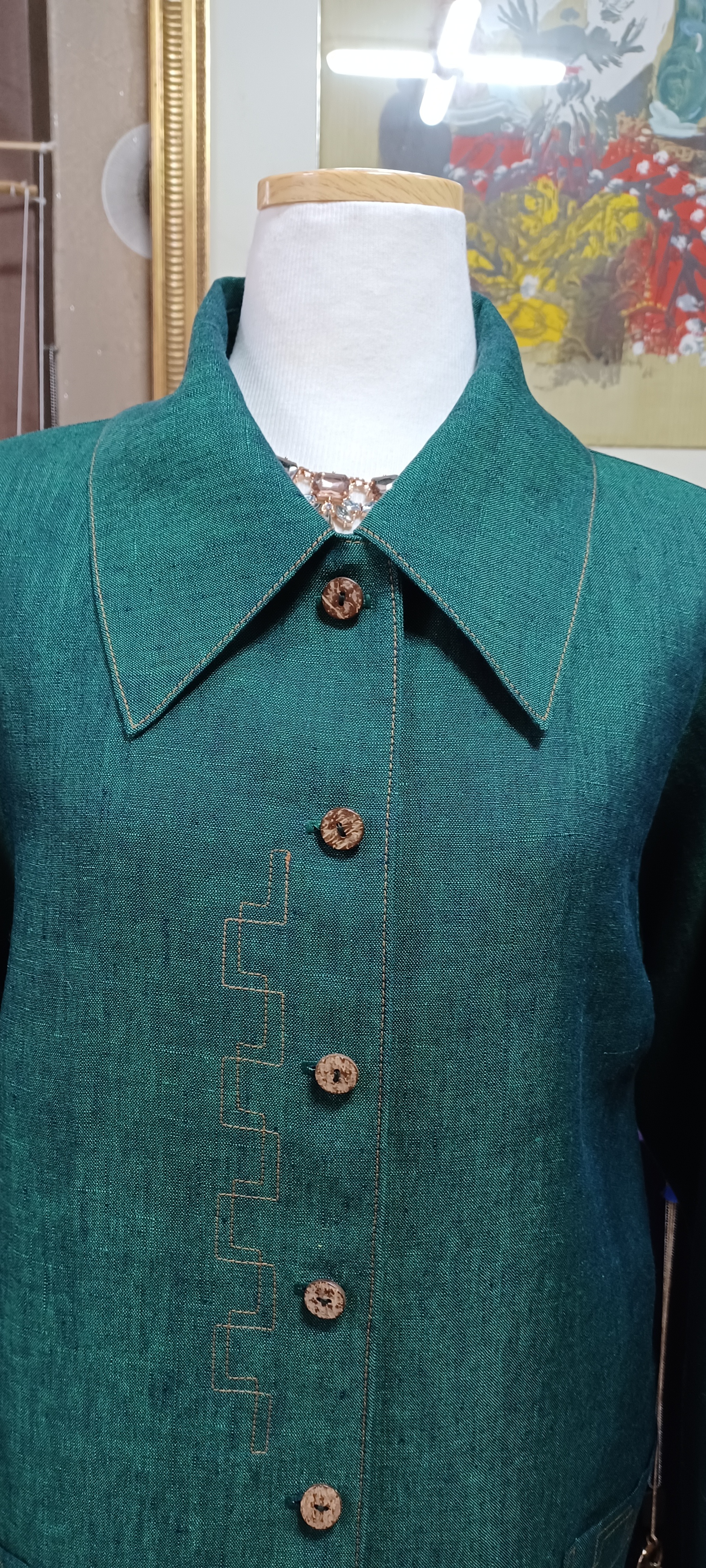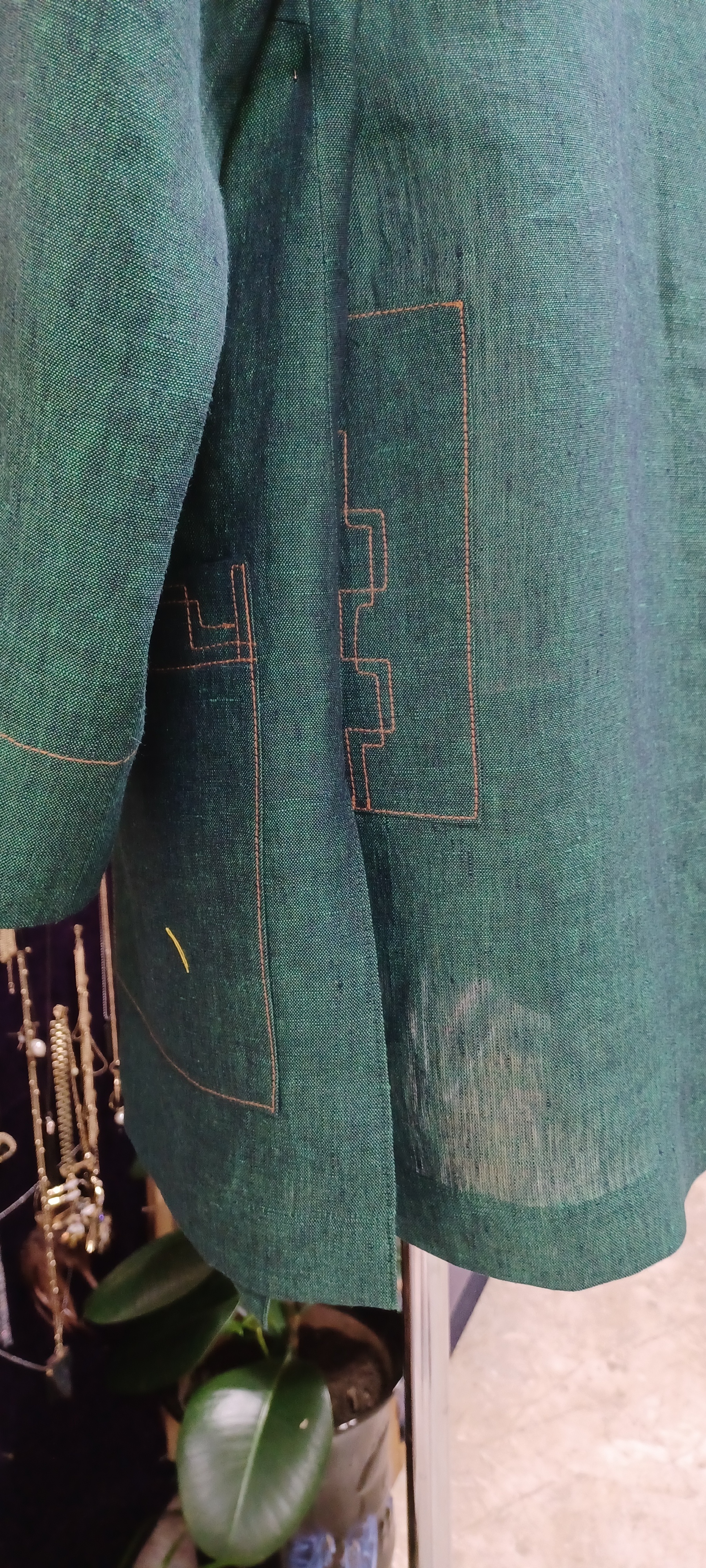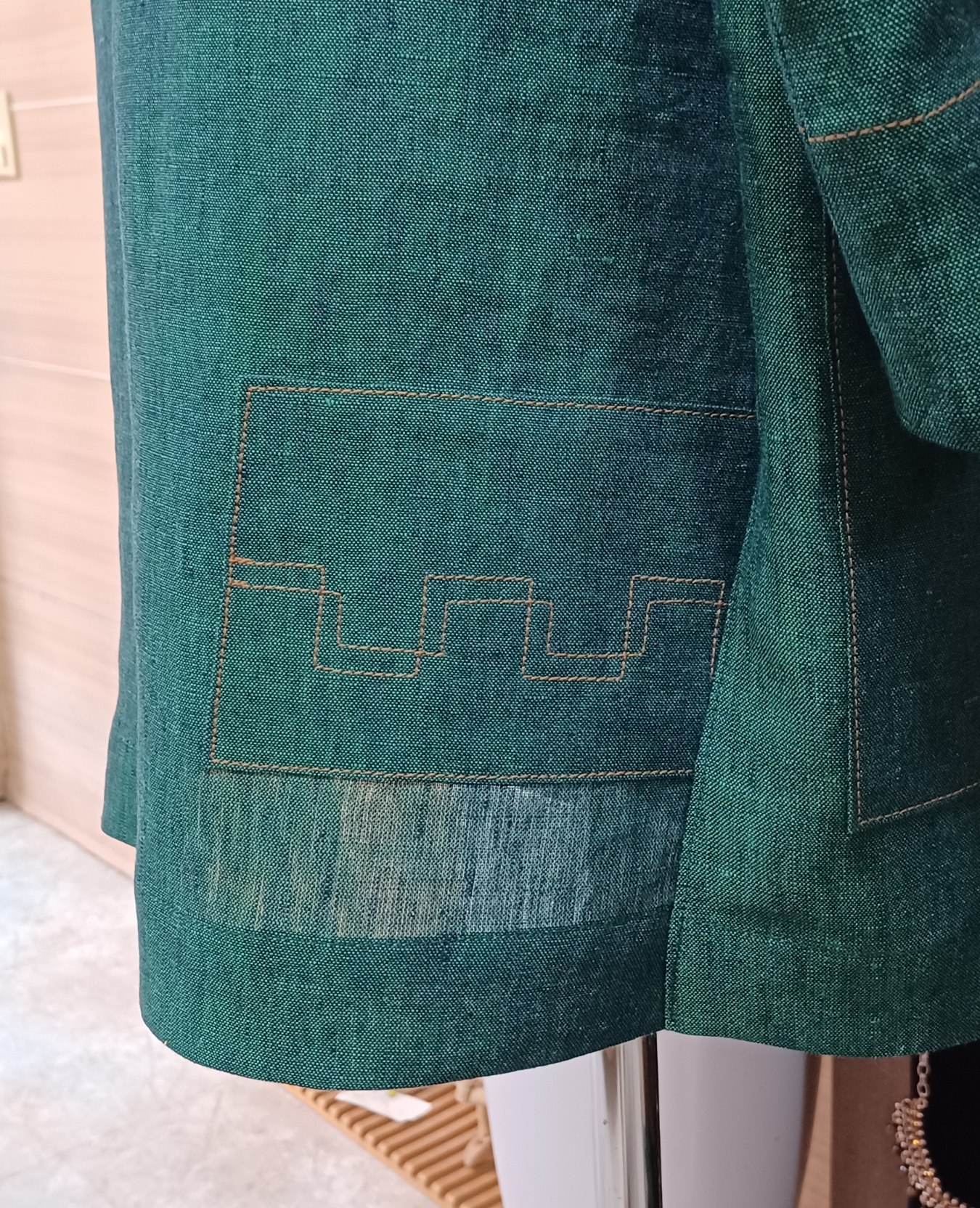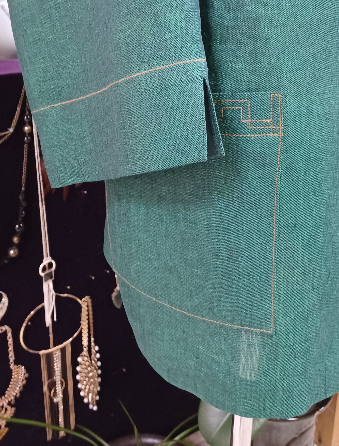 단추 옆과 주머니에 반석패션의 창작, 이름하여 성벽 스테치가 키 포인트.