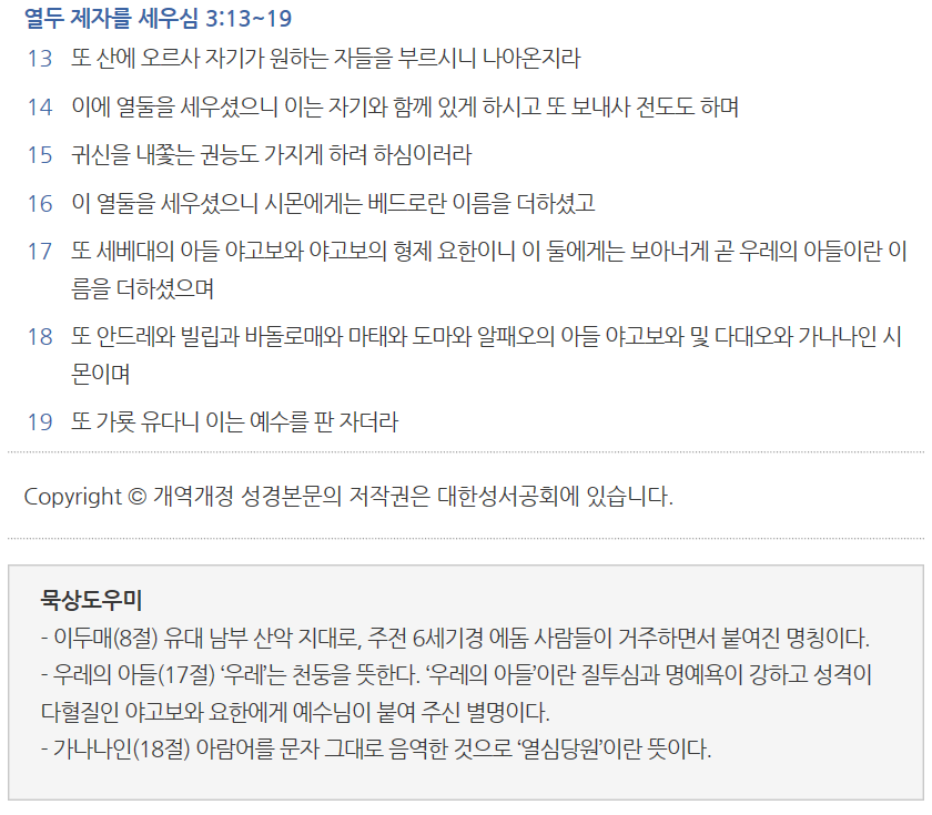 - 열두 제자를 세우심 3:13~19