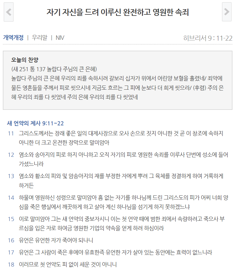 그리스도는 자기 피로 단번에 영원한 속죄를 이루셨습니다. 그 피는 우리를 죽은