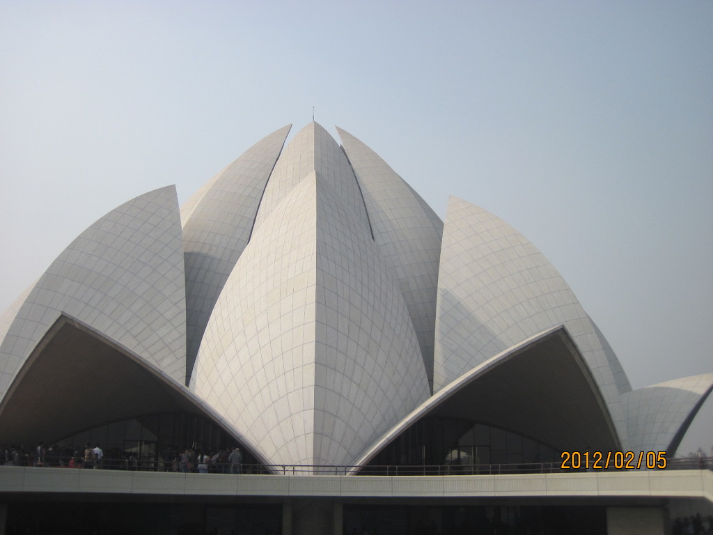 ニューデリーのバハイ寺院は純粋の象徴である蓮華の模様をしている。建物の美しさを倍加させて祈祷室の自然冷房装置として重要な役目を果たす九つの大きい池が礼拝院周辺を取り囲んでいる。とても印象的だ。礼拜院の敷地は26エーカー、建物の高さ34m、収容人員1,300人、建物直径70mで雄大壮厳で華麗である。この寺院もイスラム寺院のように観覧の際履き物を脱いで入場するようにしていて、周辺の足の臭いが強烈である。臭いに弱い人は吐気を訴えたりる。