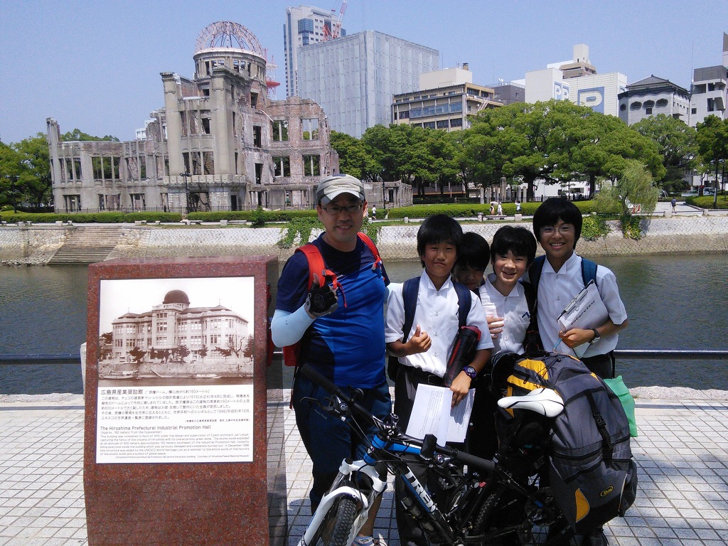 히로시마하면 가장 먼저 인사하는 놈. 바로 노면전차가 나를 반겨준다. 과거의 교통수단이 도시의 품격을 말해준다. 원폭돔에 가서 우선 묵념하고 있는데 일본중학생이 영어로 인터뷰해달라고 한다. 일본문화에 대한 내용이다. 하고나서 기념촬영하고 오늘의 목표인 구레로 향한다. 고민했다. 오늘도 야영할까? 호텔에 가서 쉴까? 결과 호텔.