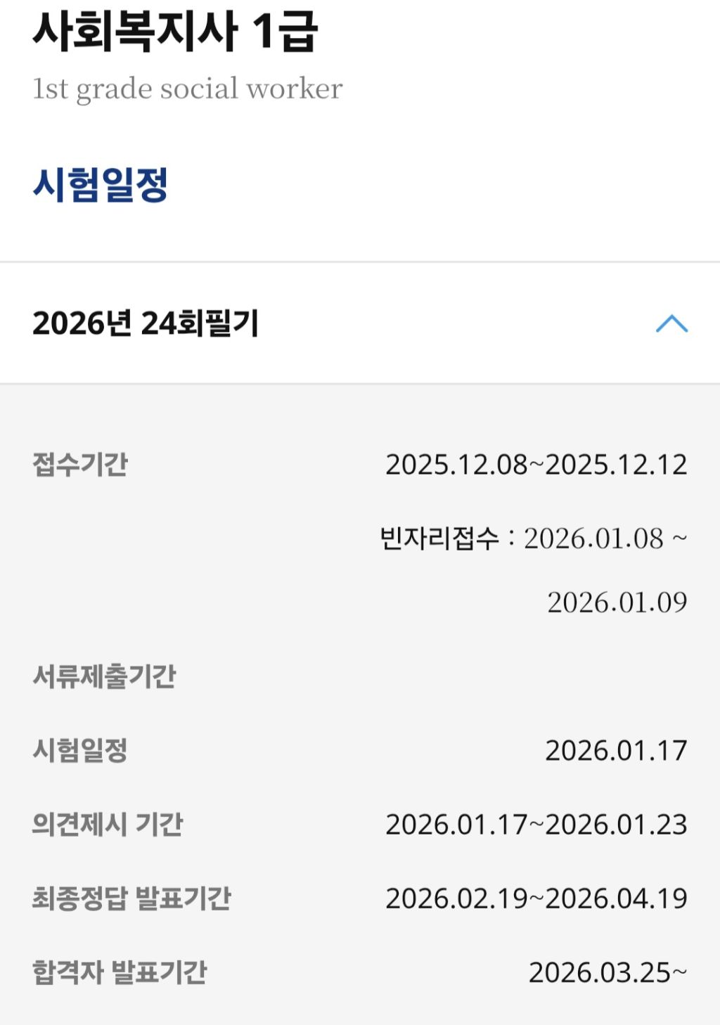 5. 다음에 해당하는 자로서 사회복지사 2급 자격증을 취득한 자 중에서, 그 자격증을 취득한 날부터 시험일까지의 기간동안 1년 이상 사회복지사업의 실무경험이 있는 자