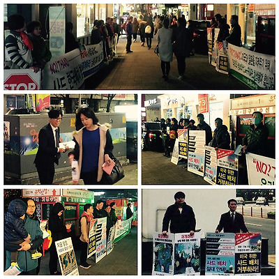 광주에서는 아침 조선대학교 정문 1인 시위와 유인물 배포를 시작으로 저녁에서 광주 금남로 알라딘 서점 앞에서 40여명의 광주회원들이 모여 영상차량과 함께 캠페인을 진행하였습니다. 특이 오늘 캠페인에는 지난 11일에 진행된 시민평화아카데미에서 사드 한국 배치에 대한 문제점에 대하여 공부했던 조선대학교에서 청소하시는 분들이 함께 하였습니다.