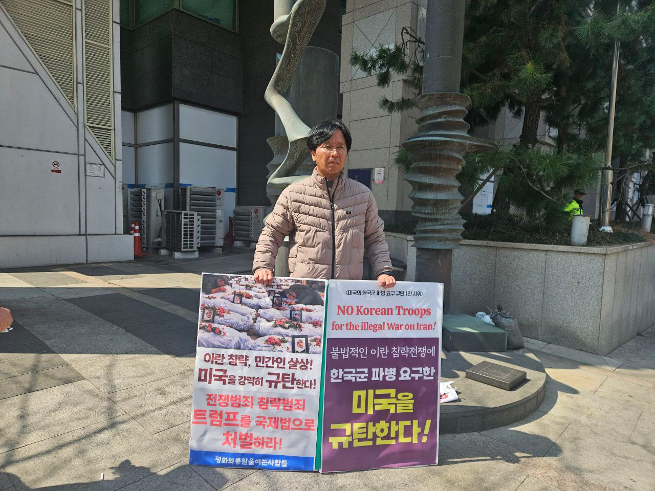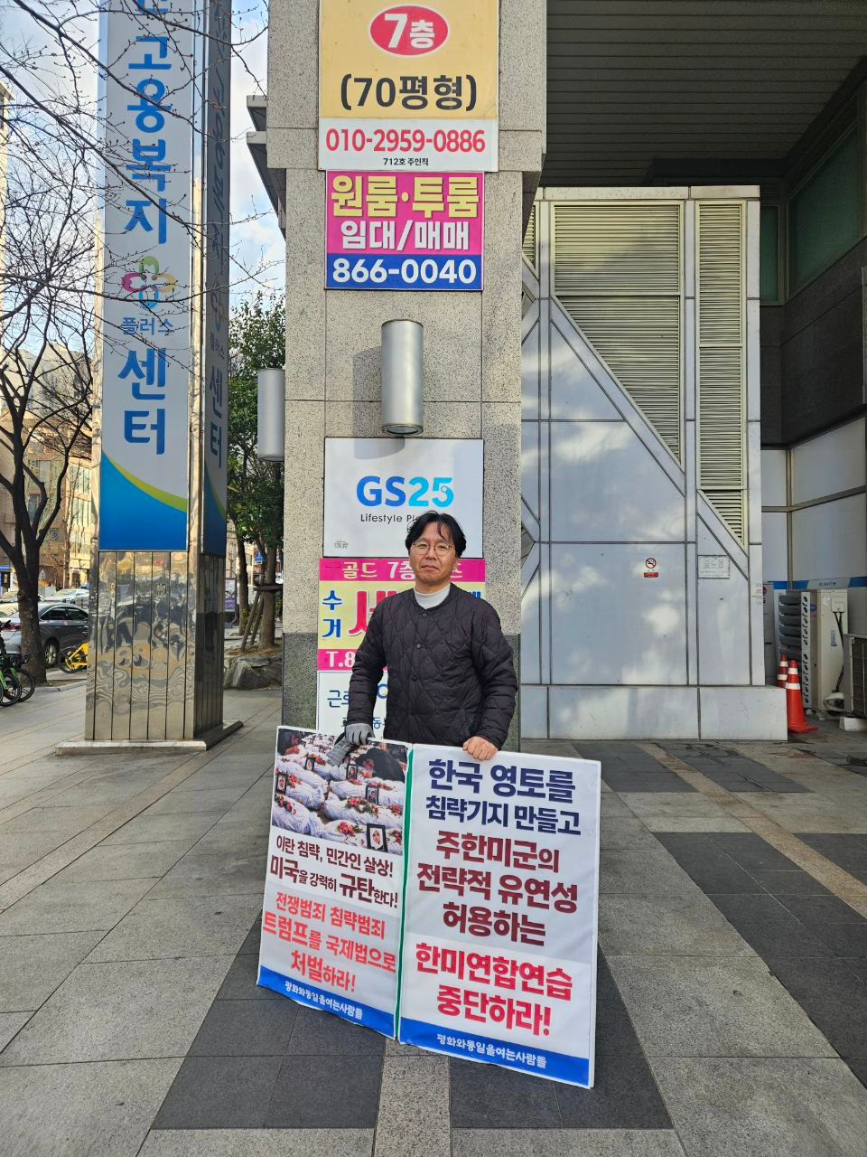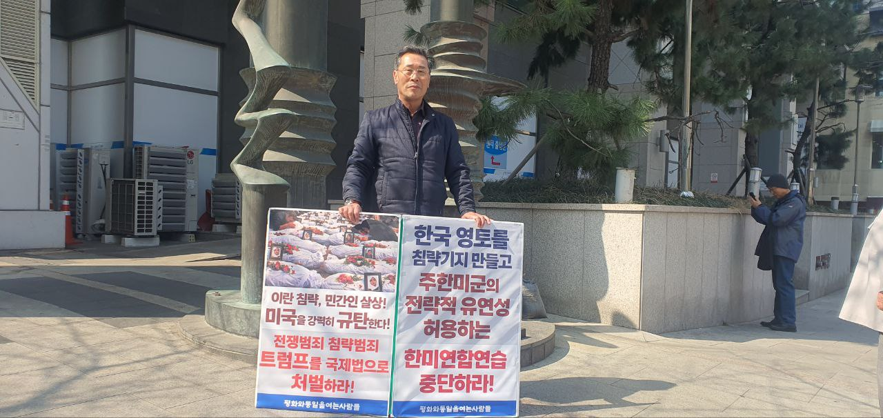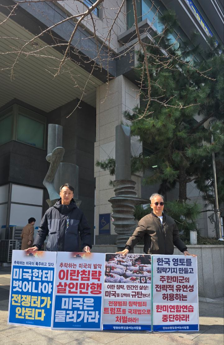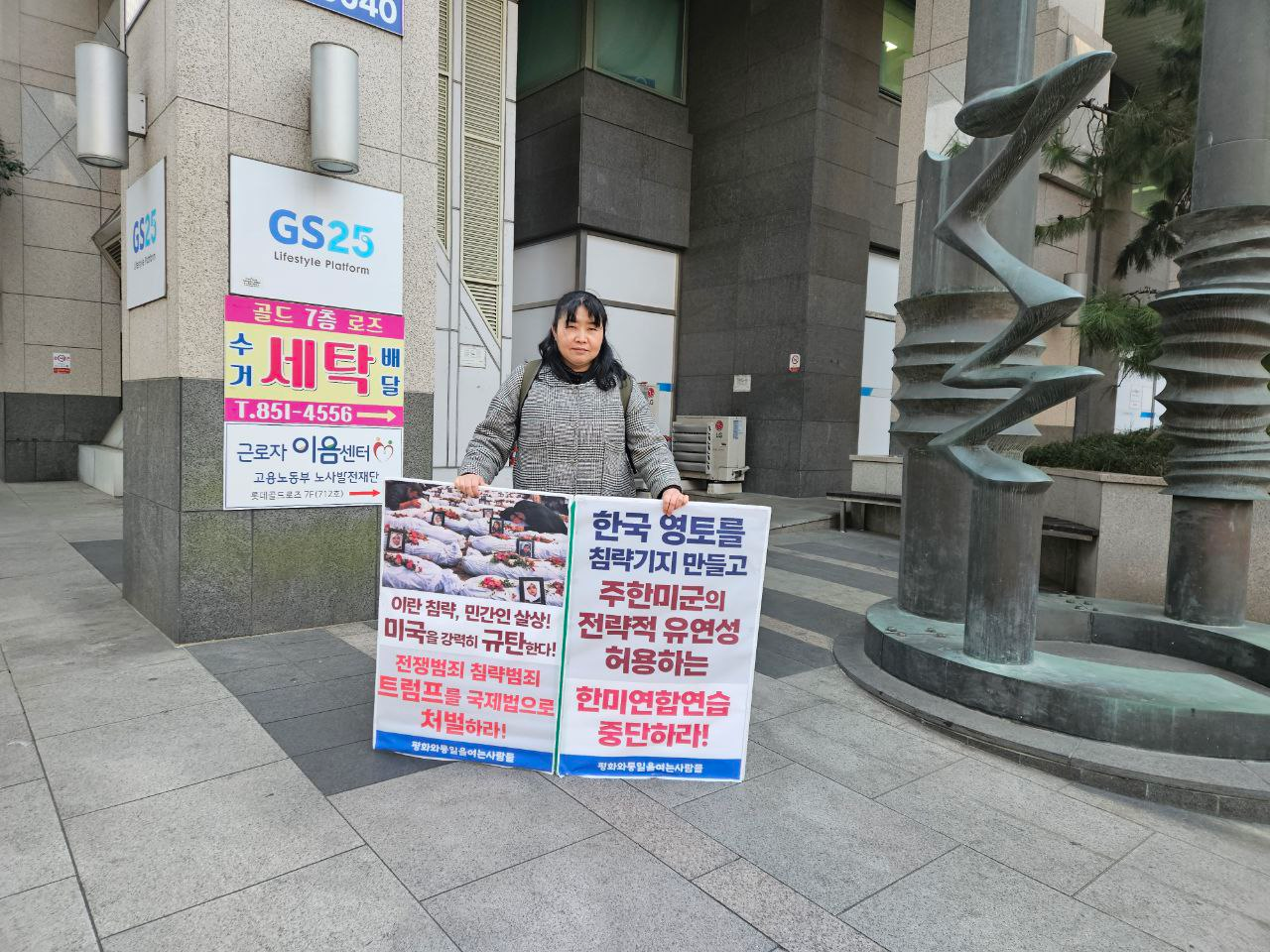 9일부터19일까지, 한미연합연습 기간 동안 월~금까지 부산 미영사관 앞에서 미국의 이란 침략과 한국에 대한 파병 요구를 규탄하고, 이란 침략의 연속선 상에서 진행하는 한미연햡연습 중단을 촉구하는 연속 1인시위를 진행했습니다.