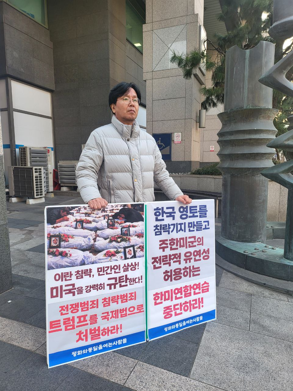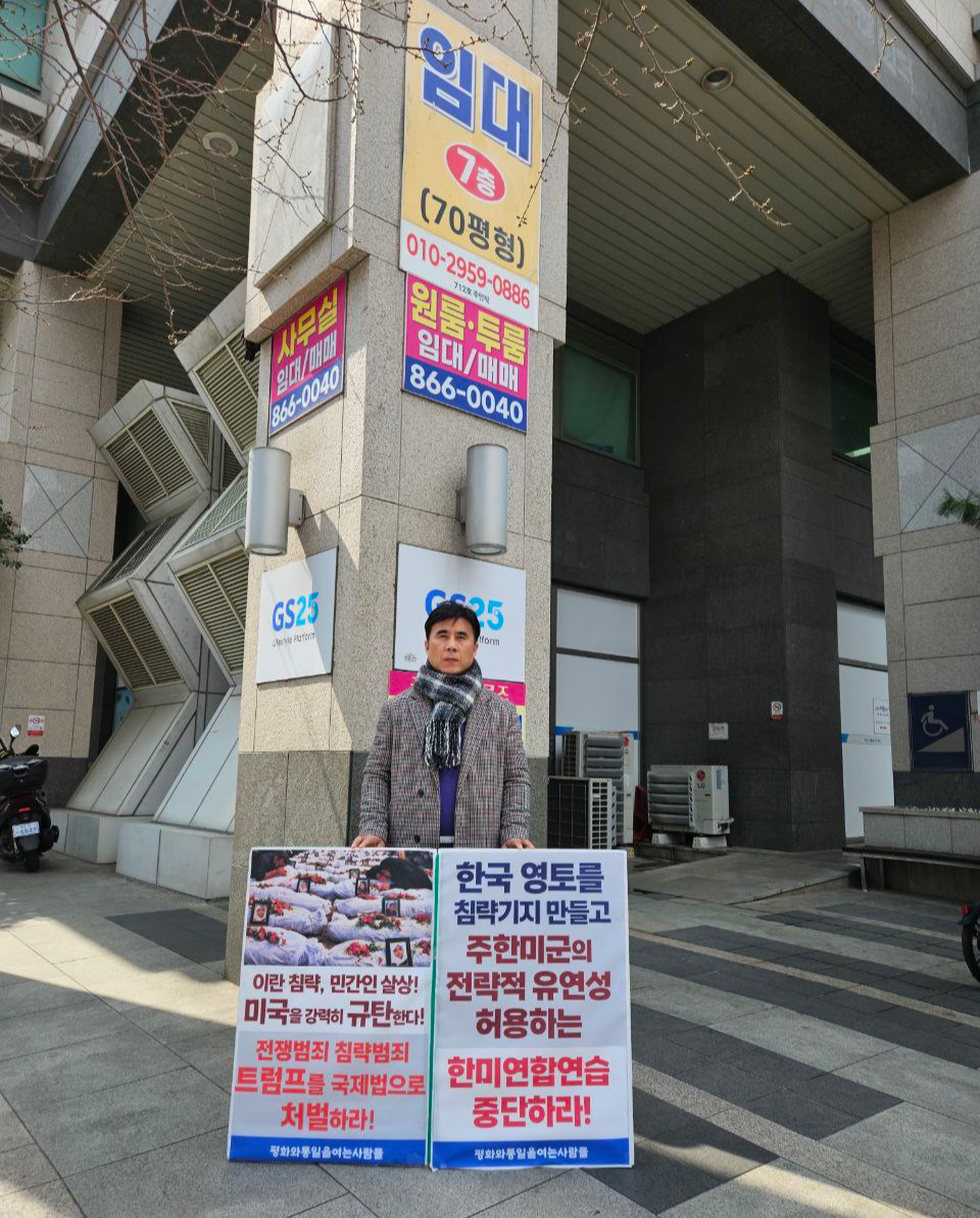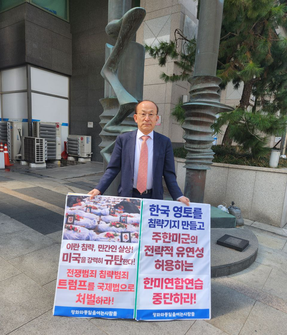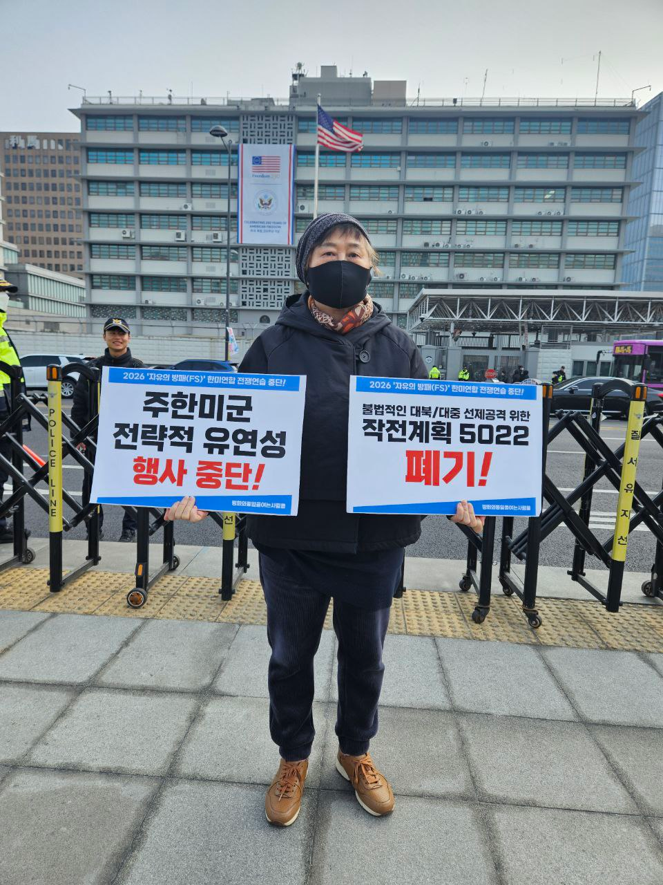9일부터19일까지, 한미연합연습 기간 동안 월~금까지 부산 미영사관 앞에서 미국의 이란 침략과 한국에 대한 파병 요구를 규탄하고, 이란 침략의 연속선 상에서 진행하는 한미연햡연습 중단을 촉구하는 연속 1인시위를 진행했습니다.
