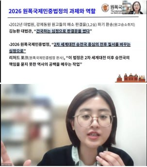 - 관련하여 최근 우리 법원이 '위안부'나 강제징용 소송에서 개인의 국제법적 청구권에 근거하여 원고 승소 판결을 내렸는지, 나아가 주권면제 등의 장벽을 넘어선 전향적 판결을 내렸는지도 간략히 살펴봤습니다.