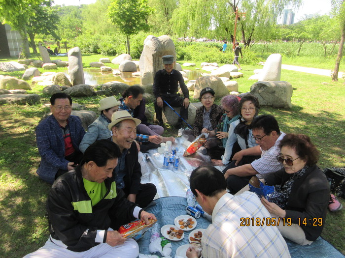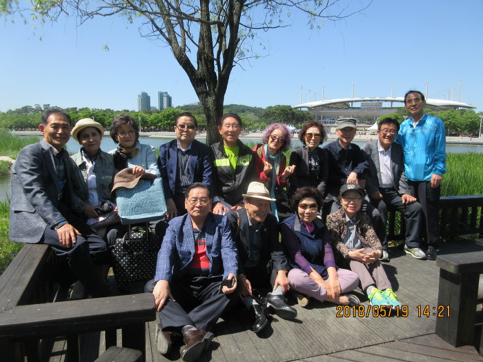 식당으로 자리를 옮기기 직전 월드컵경기장역에서 촬영한 이 카페의 첫번째 사진에는 조금 늦게 참석하신 이귀임님과 최승주님이 빠져 있지만 식당과 공원기념 사진에는 같이했습니다.