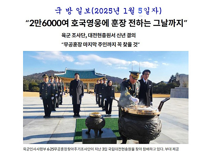 국방일보 2025년 1월 5일자 에 인사사령부 6,25무공훈장 찾아주기(조사단)이