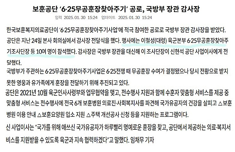 참석하여 전달한 내용이 2025년 1월 31일 국방일보 14쪽(국내)에