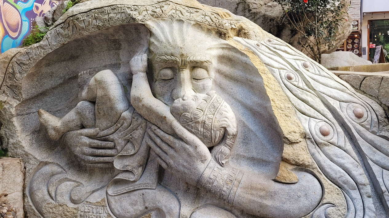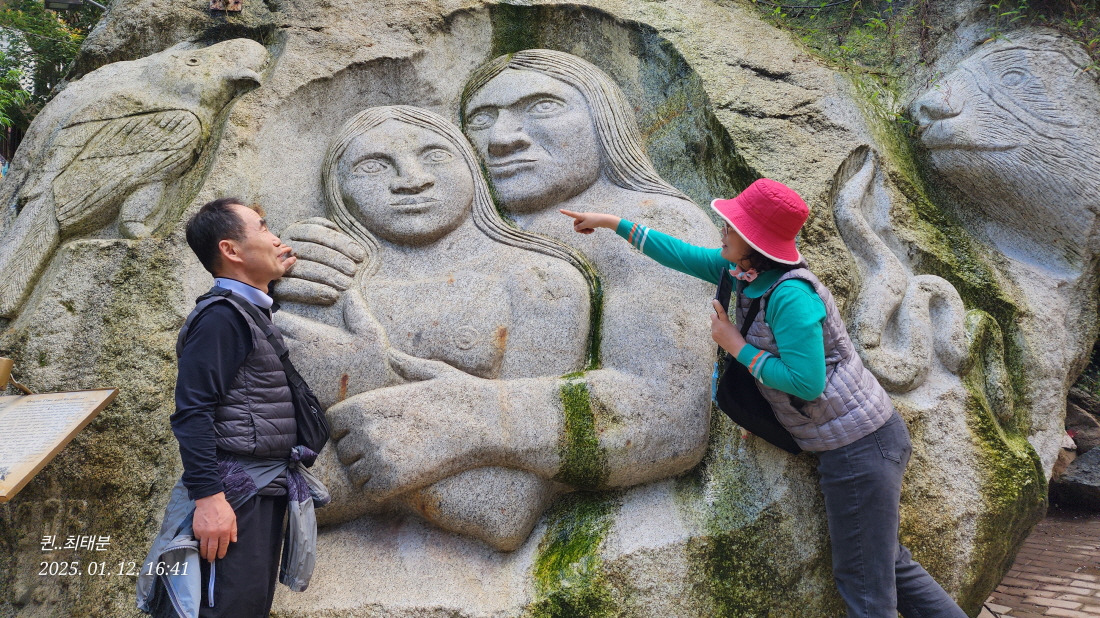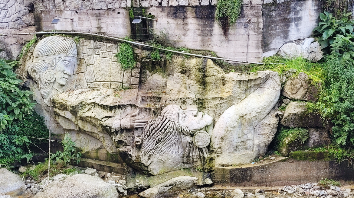 온천 물이 내려오던 계곡에도 독특한 조각작품이 ~