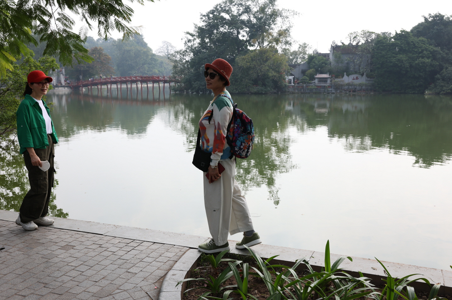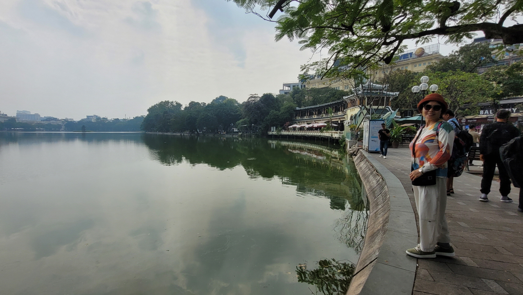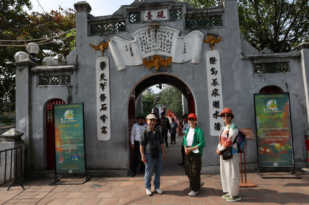 그래서 호수 중앙 응옥썬 사원에 거북이 상징이 있어요.