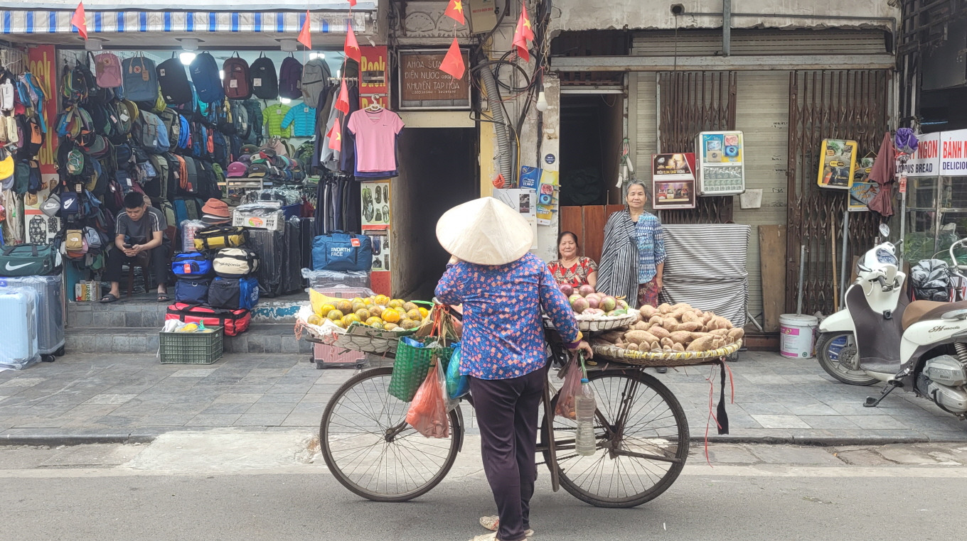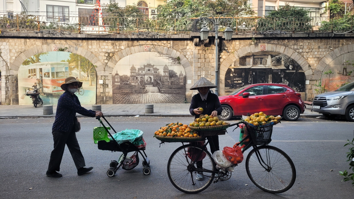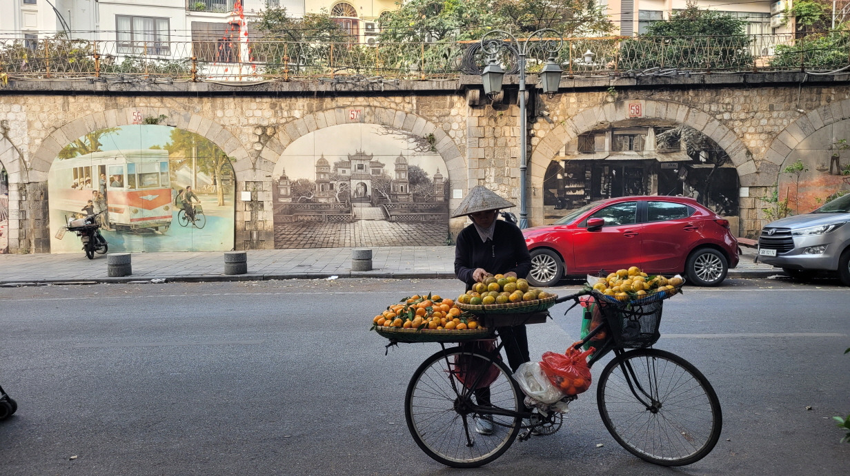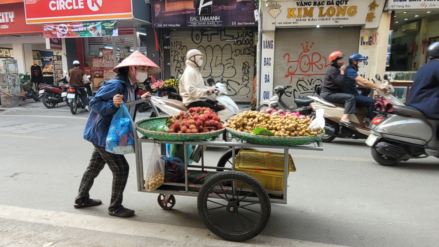 이동식 야채 와 과일 수레도 거리 곳곳을 누비고 있어요.