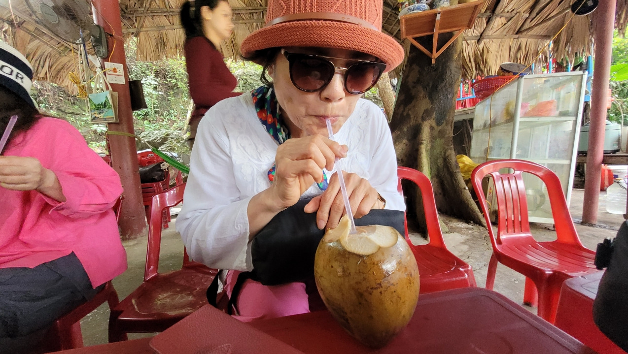 휴계소에서 천연 음료수 코코넛 하나씩 먹고