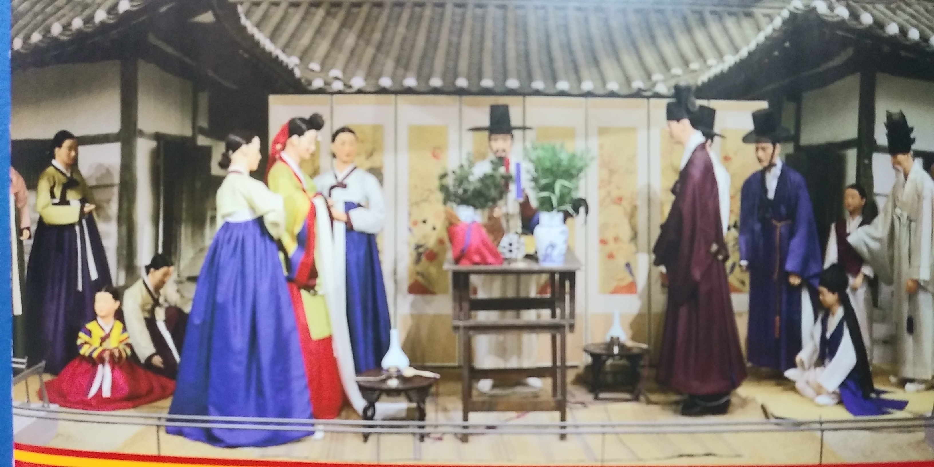 한국 민속박물관에 전시된 조형물 (壻東婦西=男東女西) = 신랑은 동쪽, 신부는 서쪽.