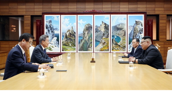 문재인 대통령과 김정은 위원장 간에 판문점 및 통일각 회담을 살펴보자.