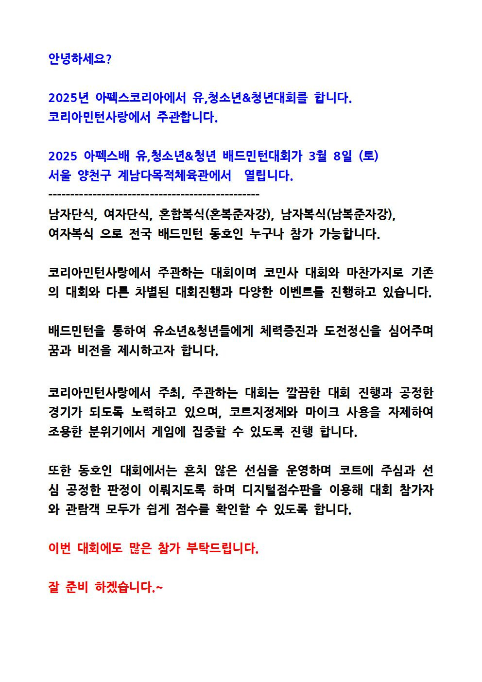 네이버카페(코리아민턴사랑), 메일(leenv7@naver.com),