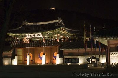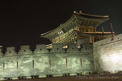 여기 저기 죽순 솟아 오르듯한 빌딩숲을 내려다 보며 따끈한 차 한잔 마신후 유네스코에 등제된 화성행궁구경 가자는 제의에 따라 피곤해 보이는 친구는 집에서 쉬게 하고 친구 부인이 운전하는 차를 타고 수원의야간 관광에 나섯는데 운전 솜씨는 물론 관광 가이드 뺨치듯 속속 들이 너무나 잘 아는 지리에 놀라기도 했지만 주차 공간 때문에 나를 내려주고 손으로 지정한 곳으로 올라가면 어김없이 좋은 포인트가 있어 헛 걸음질 안하고 사진 찍기에 얼마나 많은 도움이 되었는지 친구 부인이 얼마나 자주 이곳을 찿으셨으면이 토록 지리를 잘 아실까?