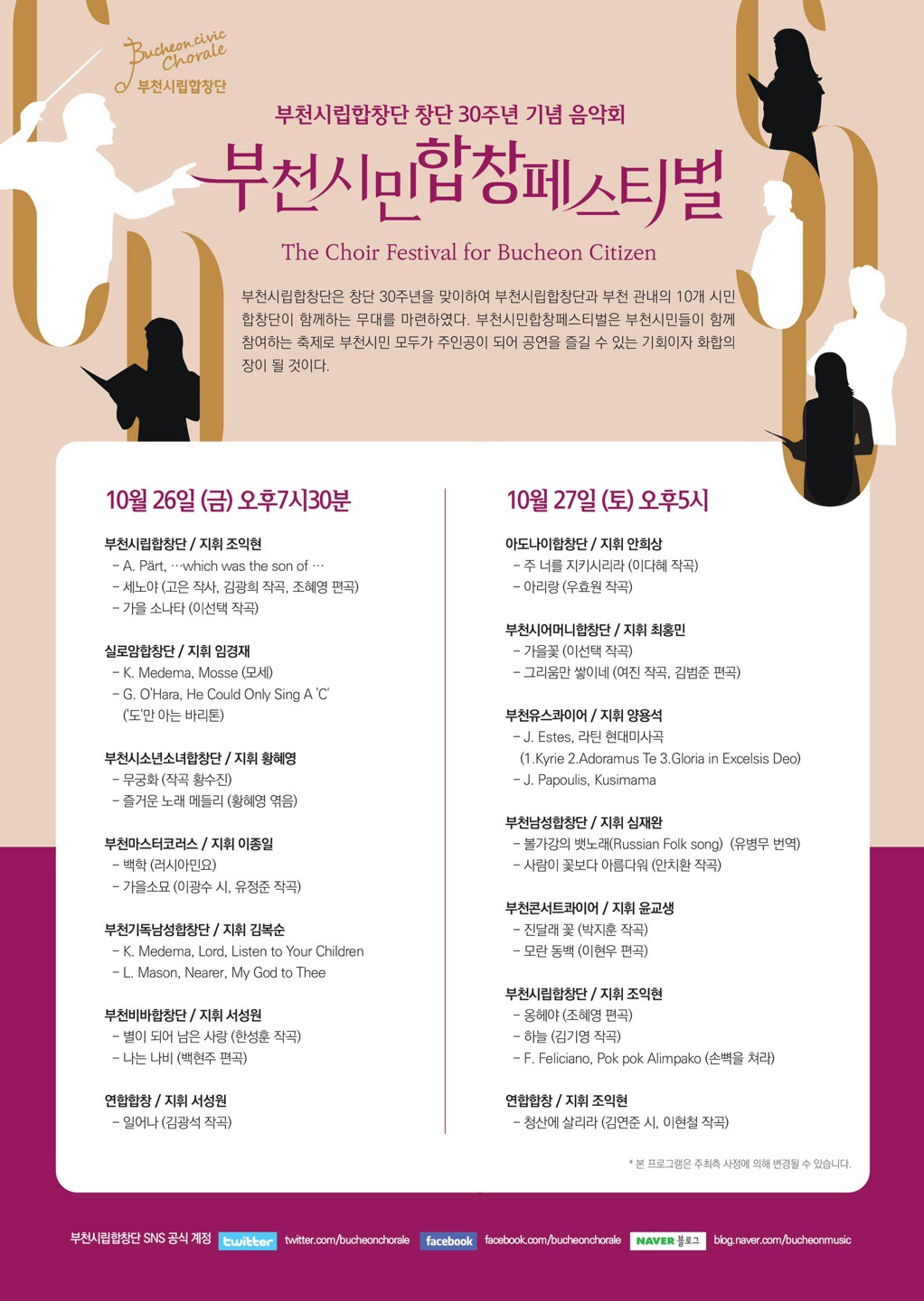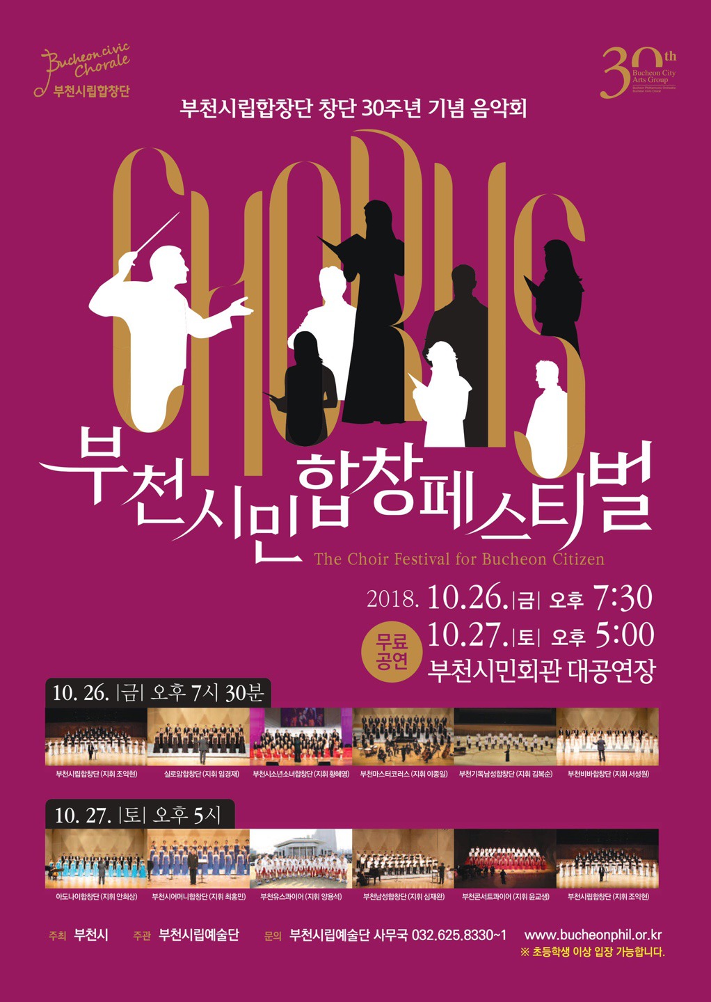 부천시립합창단 창단30주년 기념 부천시민합창페스티벌(2018.10.26(금) 부천시민회관 대공연장 작성자서성원(지휘자)|작성시간18.10.10|조회수44 목록 댓글 0 글자크기 작게가 글자크기 크게가 다음검색 현재 게시글 추가 기능 열기 북마크 공유하기 신고 센터로 신고 댓글 댓글 0 댓글쓰기 답글쓰기 댓글 리스트