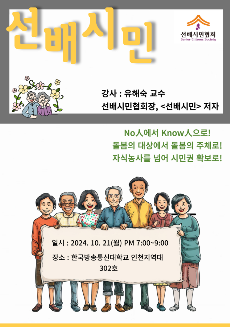 유해숙 교수님 특강!!(10월21일) 작성자김금주(편입3)|작성시간24.10.17|조회수26 목록 댓글 0 글자크기 작게가 글자크기 크게가 유해숙교수님 특강- 일시 : 2024.10.21(월) 19:00~21:00- 강의실 : 인천지역대 302호- 주제 : 선배시민많은 참여부탁드립니다. 다음검색 현재 게시글 추가 기능 열기 북마크 공유하기 신고 센터로 신고 댓글 댓글 0 댓글쓰기 답글쓰기 댓글 리스트