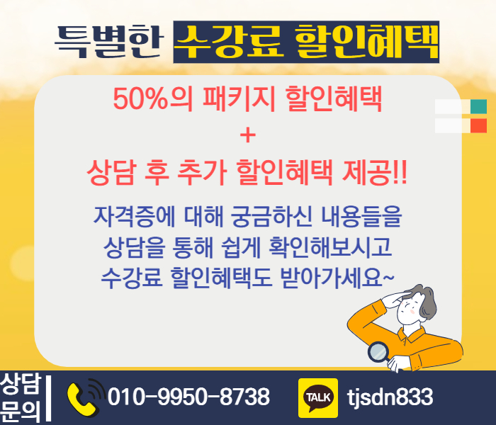 수강료 할인혜택도 받아보시면 좋겠어요 ^^
