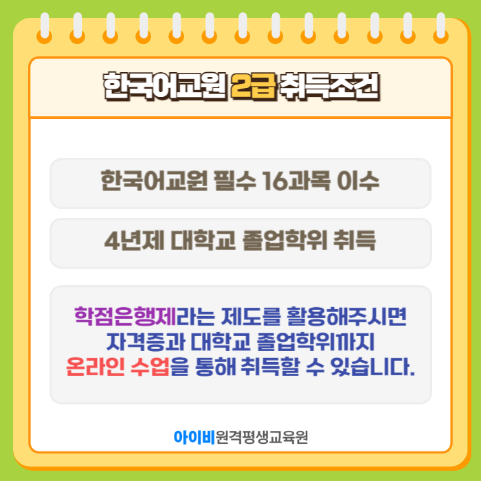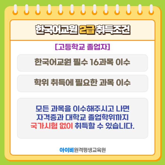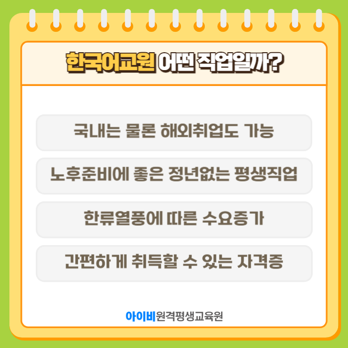 한국어교원 자격증을 취득해주셔야 하기 때문에