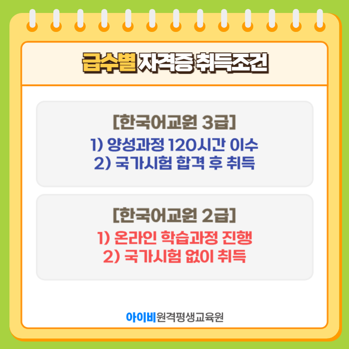 한국어교원 자격증은 1급, 2급, 3급이 있으며