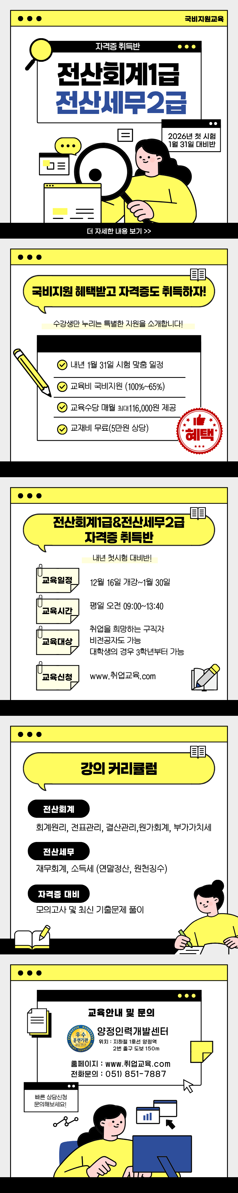 📢 회계사무원 양성(전산회계&전산세무 자격증 취득)