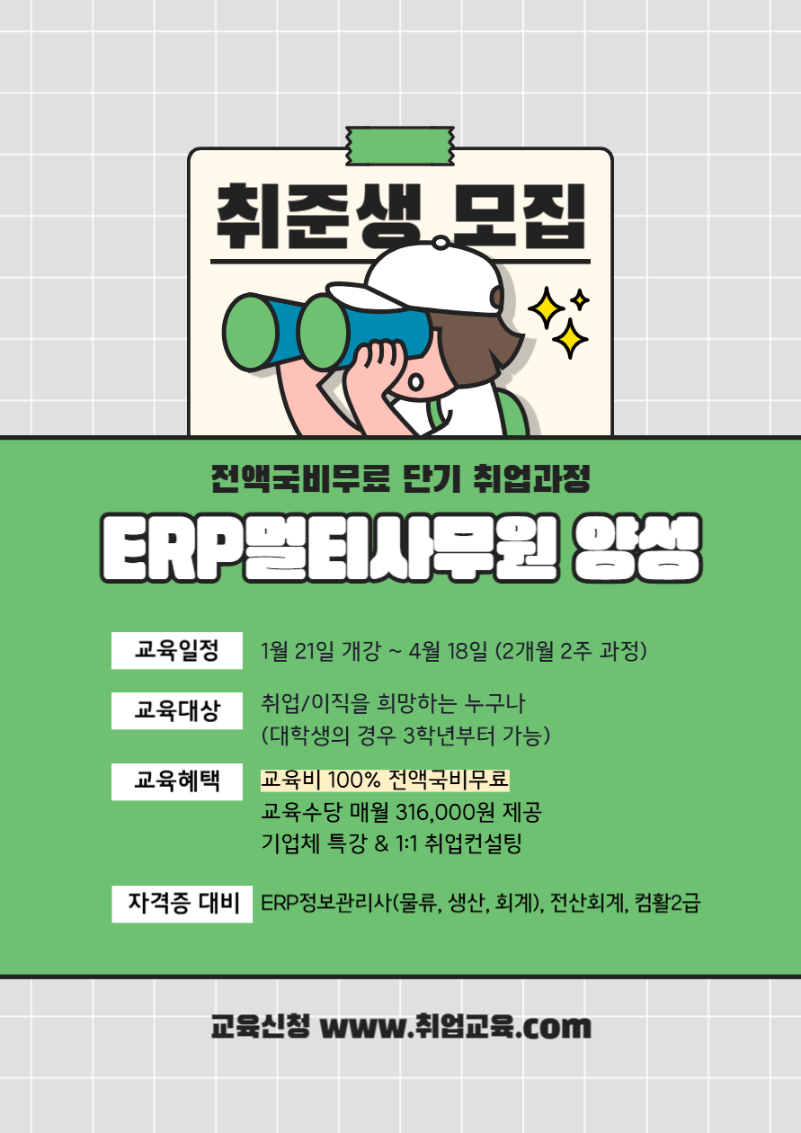 🎯전액국비무료 물류・ERP・사무직분야 취업준비반
