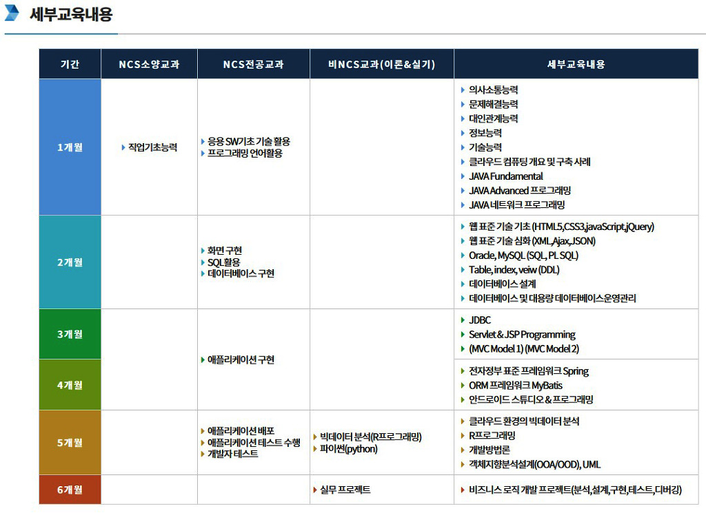 커리큘럼은 HRD넷에서