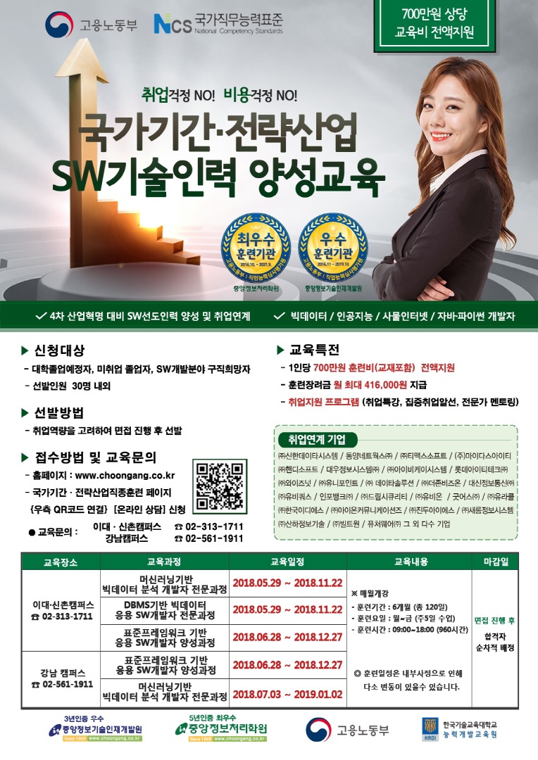 고용노동부에서 지원해서 개인들이 비용없이 교육을 받고 취업 할 수