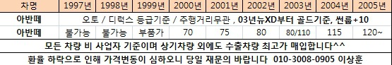 클릭 ( 연식무관 / 색상무관 / W등급기준 / 오토기준, 수동문의)