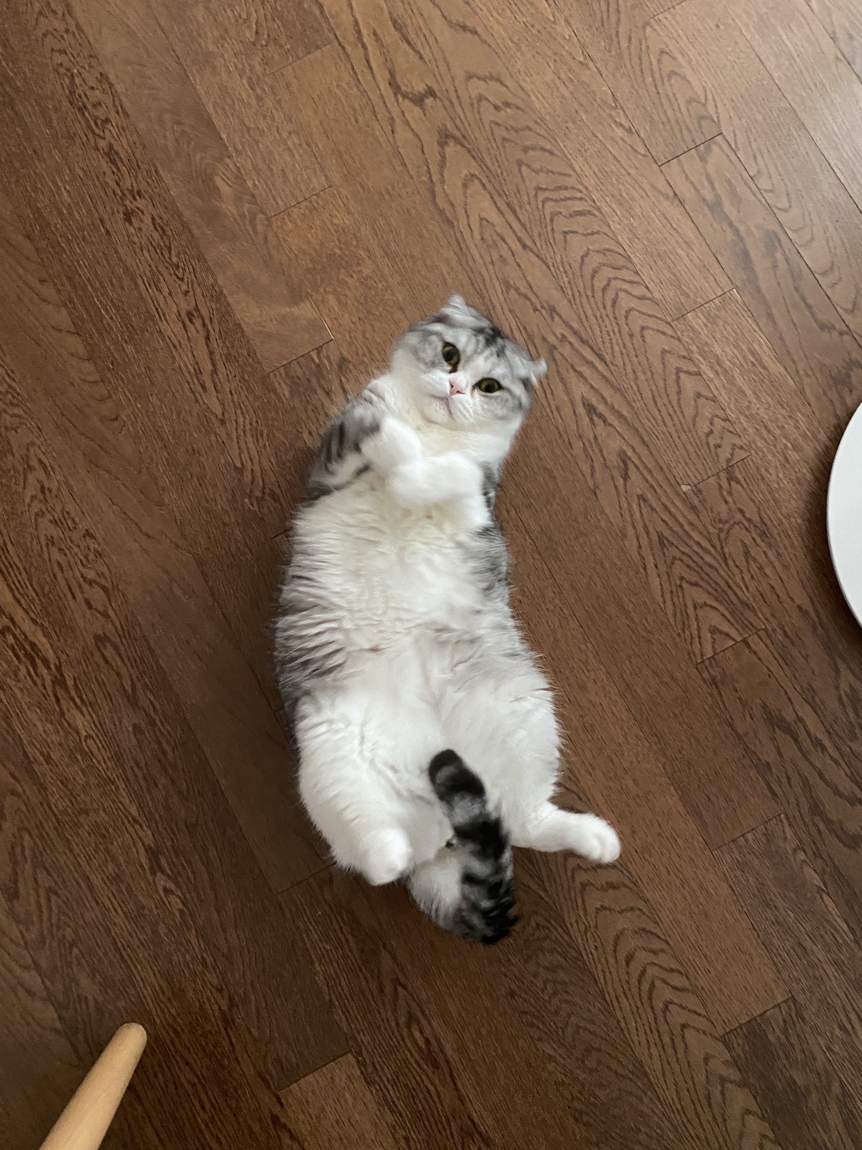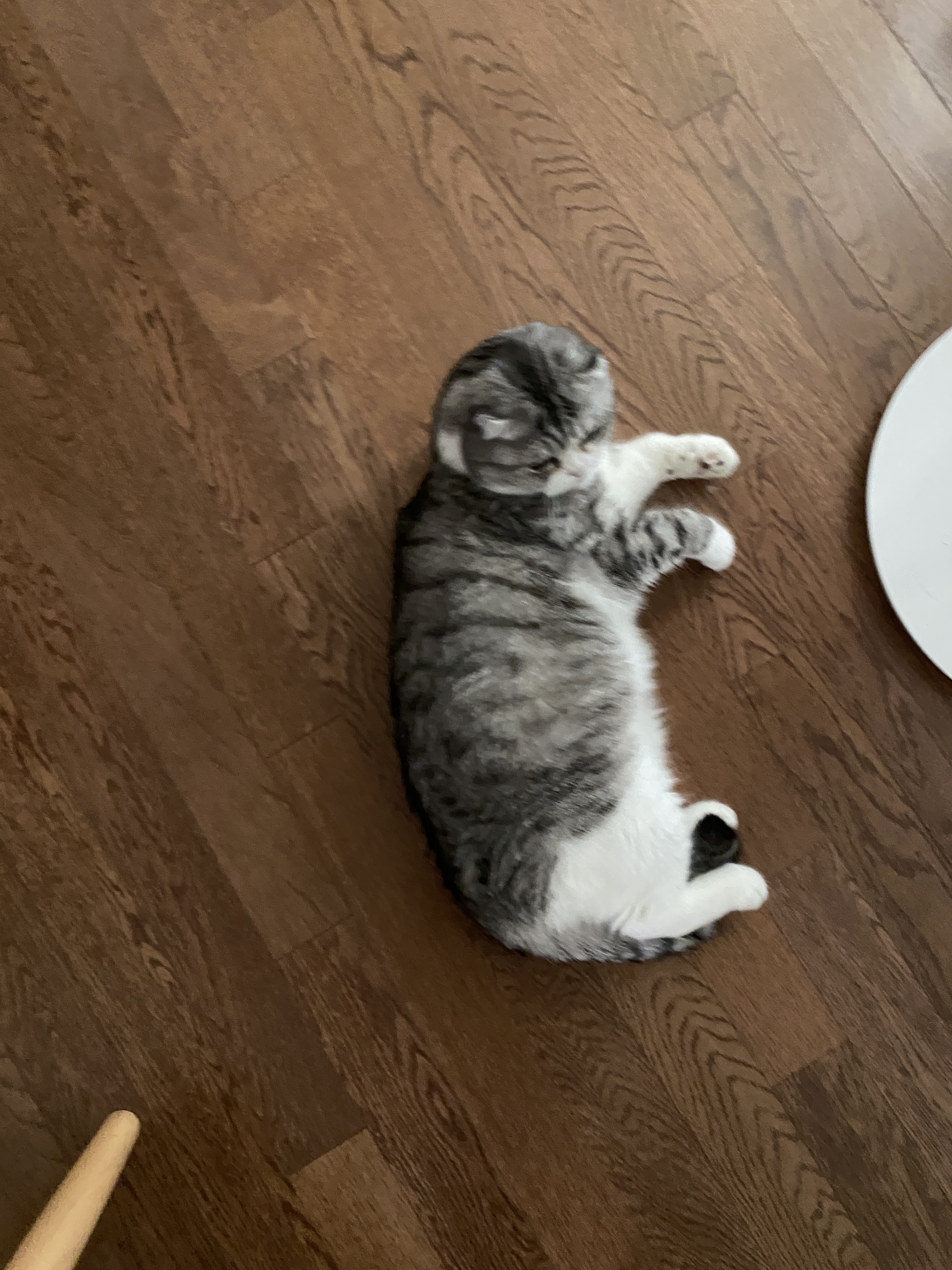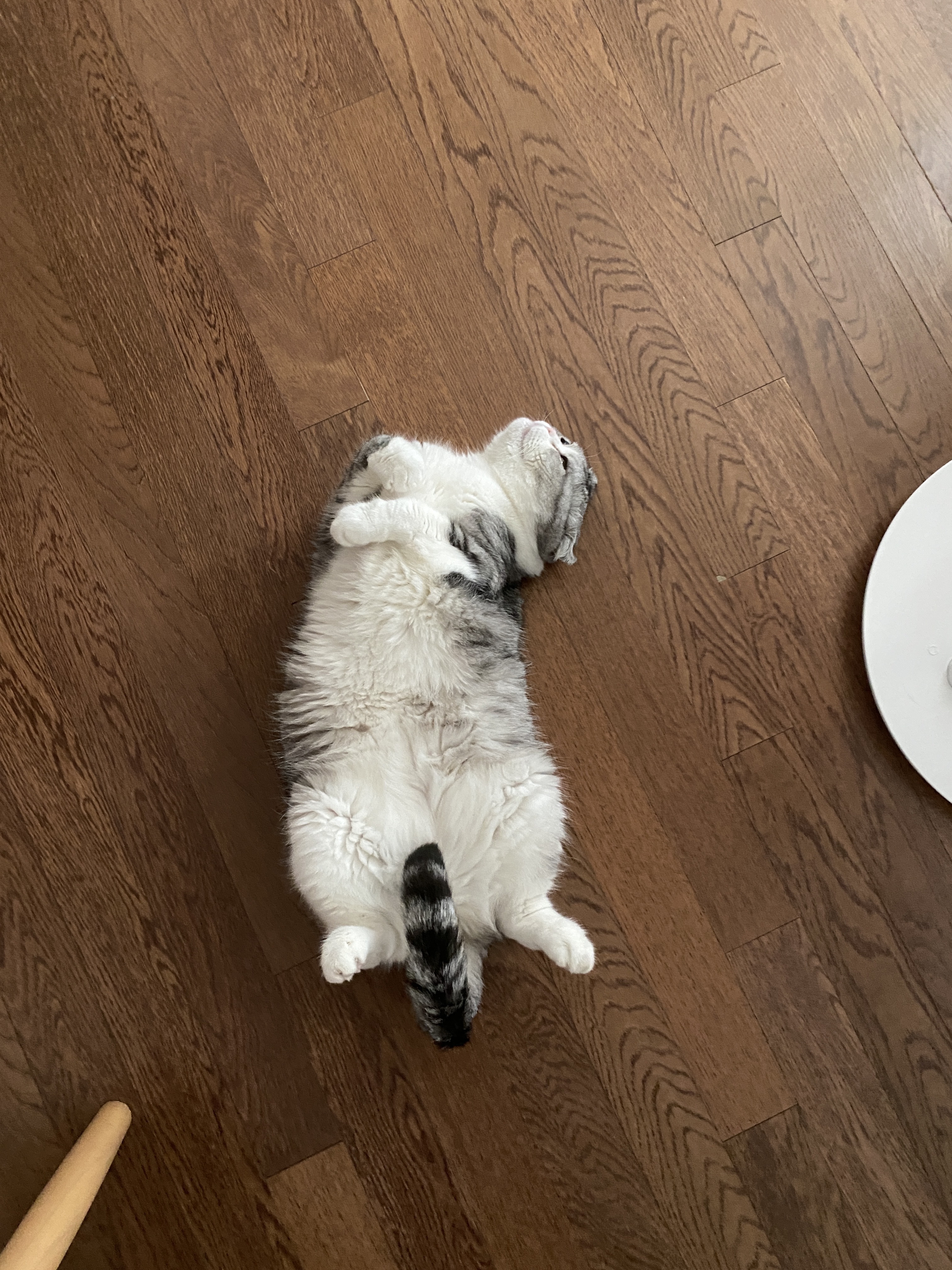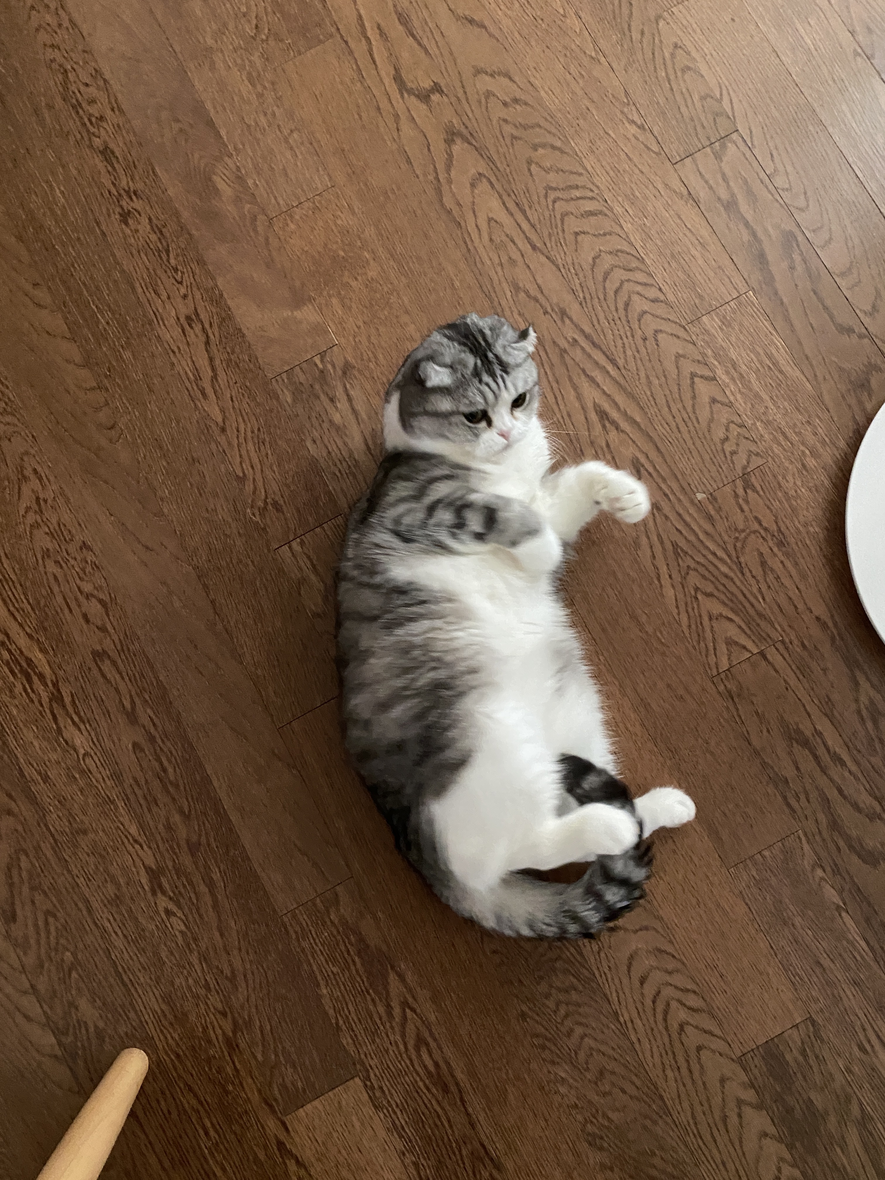 낮시간, 방바닥에 누워 쉬고 계신 행복씨랍니다.