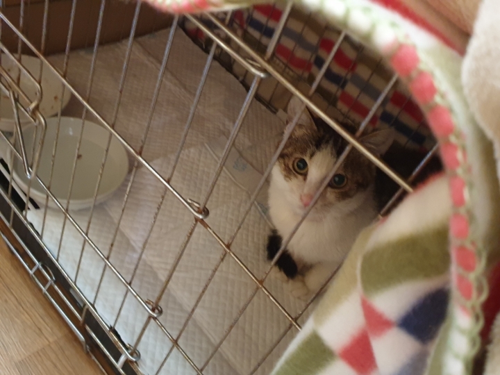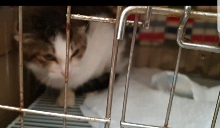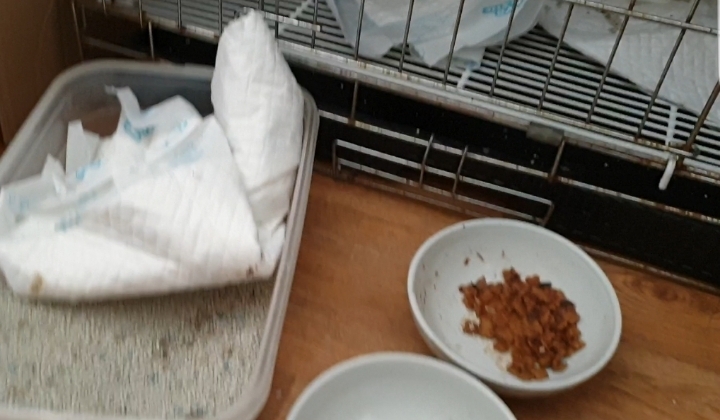 아침에 철망에서 꺼낸 모래통