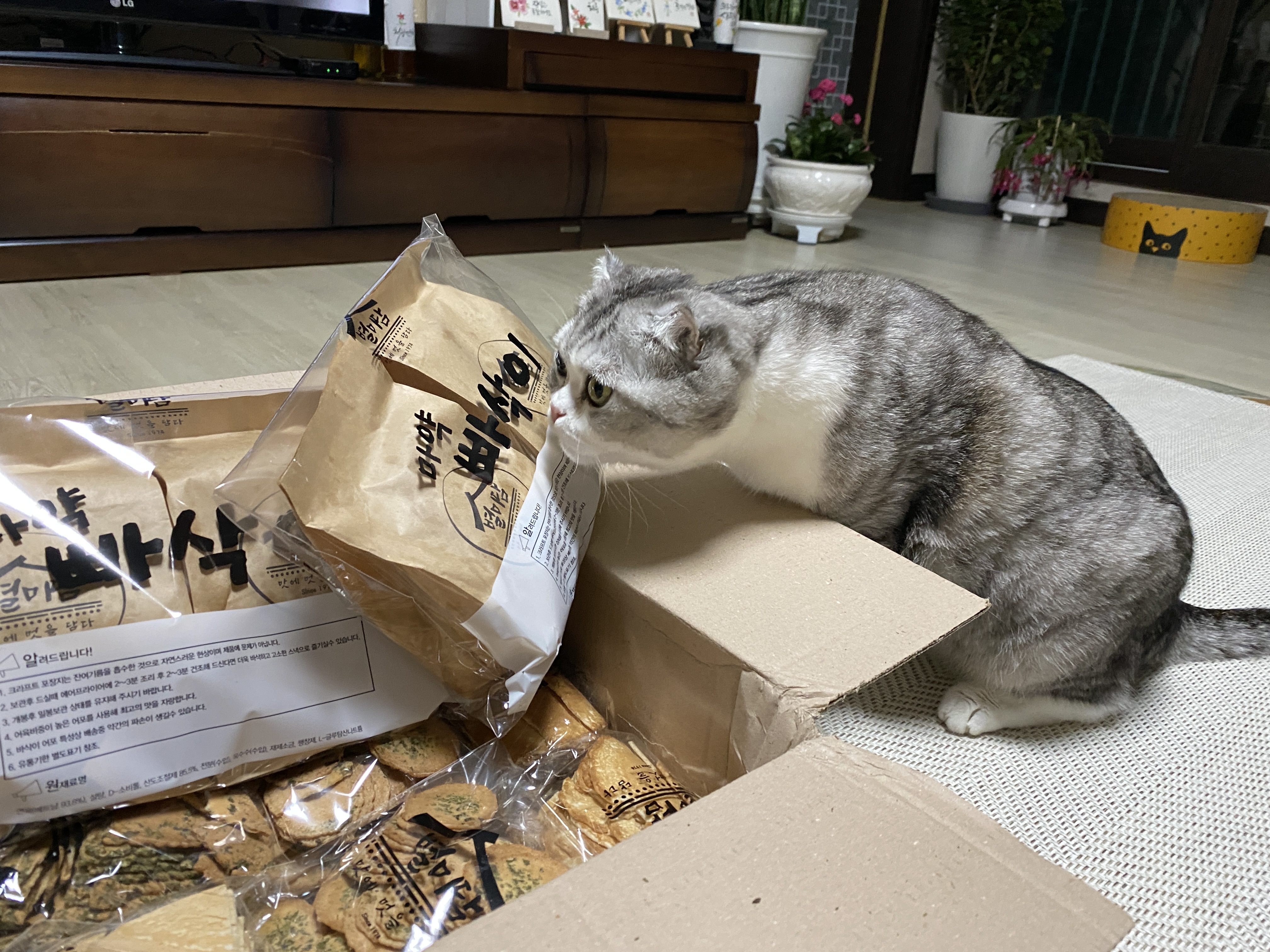 "과자가 딱 봐도 맛있게 생겼네. 고맙다고 전해드려라."