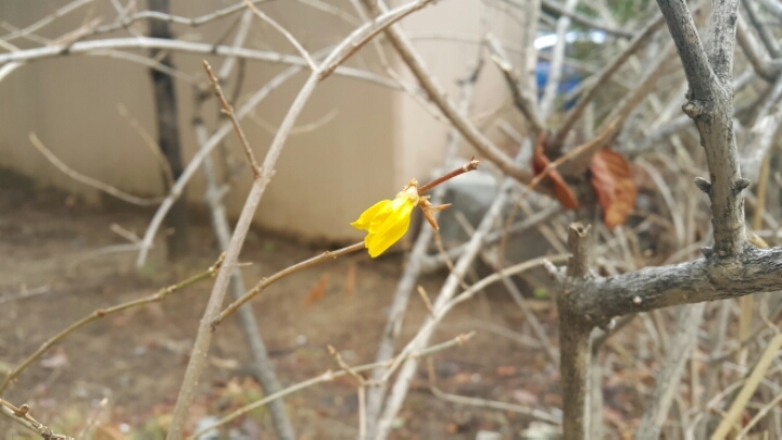 따뜻한겨울 날씨에 미친개나리가 피엇습니다.