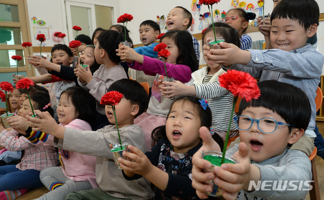 ◆ 어린이들이 직접만든 '어버이날 카네이션' ▷ 본, 'Netizen Photo News' 는 가입 필요없이 손님께서도 연결에 넣어두고 날마다 보실 수 있습니다. (저작권 있음) '한국 네티즌본부' ○··· 【전주=뉴시스】 김얼 기자= 어버이날을 하루 앞둔 7일 전북 전주시 전북대학교 어린이집에서 어린이들이 부모님께 선물할 카네이션을 만들고 환하게 웃고 있다.pmkeul@newsis.com |