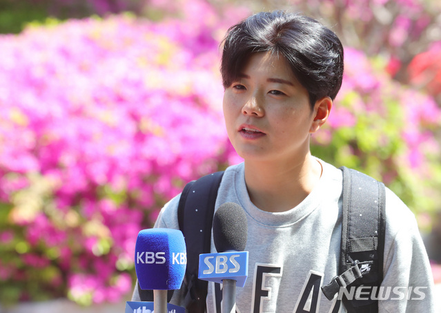 ◆ 취재진 질문에 답변하는 전가을 ▷ 본, 'Netizen Photo News' 는 가입 필요없이 손님께서도 연결에 넣어두고 날마다 보실 수 있습니다. (저작권 있음) '한국 네티즌본부' ○··· 【파주=뉴시스】 배훈식 기자 = 2019 FIFA 프랑스 여자월드컵 대비 국가대표 최종 훈련명단에 오른 전가을이 7일 오후 경기 파주시 파주NFC에 입소하며 취재진의 질문에 답하고 있다. dahora83@newsis.com |