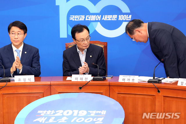 ◆ 이해찬 대표에게 인사하는 이개호 장관 ▷ 본, 'Netizen Photo News' 는 가입 필요없이 손님께서도 연결에 넣어두고 날마다 보실 수 있습니다. (저작권 있음) '한국 네티즌본부' ○··· 서울=뉴시스】이종철 기자 = 7일 오후 서울 여의도 국회에서 민주당 당대표실에서 열린 아프리카돼지열병 긴급 당정 점검회의에 참석한 이개호 농림축산식품부 장관이 이해찬 대표에게 인사를 하고 있다. jc4321@newsis.com |