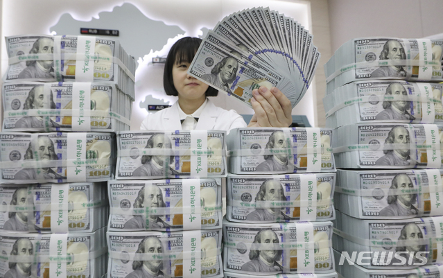 ◆ 외환보유액, 미달러화 강세 여파 4040억달러로 감소 ▷ 본, 'Netizen Photo News' 는 가입 필요없이 손님께서도 연결에 넣어두고 날마다 보실 수 있습니다. (저작권 있음) '한국 네티즌본부' ○··· 【서울=뉴시스】최진석 기자 = 7일 한국은행이 발표한 '2019년 4월말 외환보유액' 자료에 따르면 지난달 말 우리나라 외환보유액은 4040억3000만달러로 전월말 대비 12억2000만달러 감소했다. 지난해 12월 4036억9000만달러를 기록한 이후 4개월만에 가장 낮은 수치다. 세계 외환보유액 규모 순위도 8위에서 9위로 8개월만에 한계단 내려갔다. 사진은 이날 서울 중구 을지로 KEB하나은행 본점 위변조대응센터에서 직원이 외화를 검수하고 있다. myjs@newsis.com |