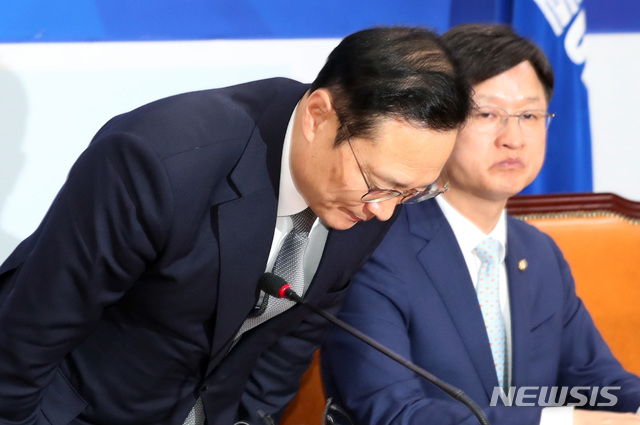 ◆ 홍영표 원내대표 고별 기자간담회 ▷ 본, 'Netizen Photo News' 는 가입 필요없이 손님께서도 연결에 넣어두고 날마다 보실 수 있습니다. (저작권 있음) '한국 네티즌본부' ○··· 【서울=뉴시스】이종철 기자 = 민주당 홍영표 원내대표가 7일 오후 서울 여의도 국회에서 고별 기자간담회를 가지면서 감사의 인사를 하고 있다. |