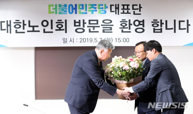 ◆ 더불어민주당 대표단 대한노인회 방문 간담회 ▷ 본, 'Netizen Photo News' 는 가입 필요없이 손님께서도 연결에 넣어두고 날마다 보실 수 있습니다. (저작권 있음) '한국 네티즌본부' ○··· 더불어민주당 이해찬 대표가 7일 서울 중구 부영태평빌딩에서 열린 더불어민주당 대표단 대한노인회 방문 간담회에서 이중근 대한노인회 회장에게 꽃을 전달하고 있다. radiohead@newsis.com |