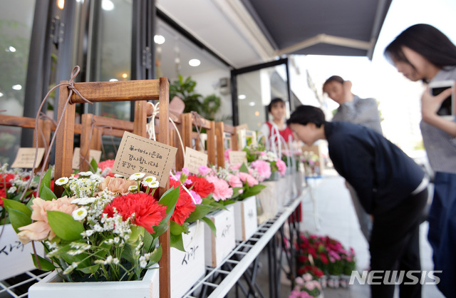 ◆ 어버이날 카네이션 고르는 시민들 ▷ 본, 'Netizen Photo News' 는 가입 필요없이 손님께서도 연결에 넣어두고 날마다 보실 수 있습니다. (저작권 있음) '한국 네티즌본부' ○··· 【대구=뉴시스】우종록 기자 = 어버이날을 하루 앞둔 7일 오후 대구 중구 경북여고 맞은편에 위치한 한 꽃집에서 시민들이 선물용으로 포장된 카네이션을 살펴보고 있다. |