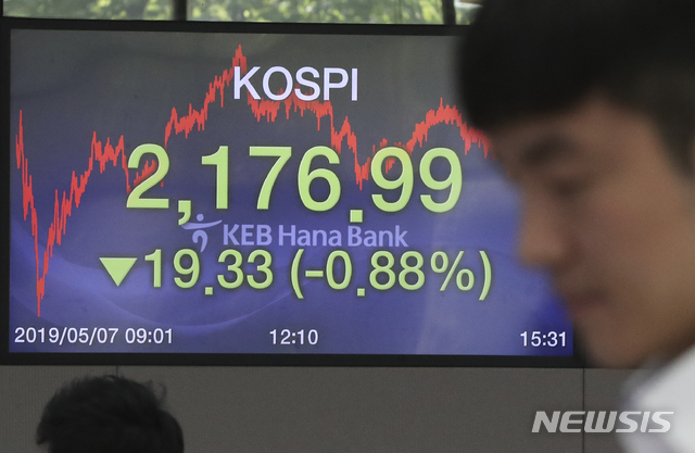 ◆ 하락 마감한 코스피 지수 ▷ 본, 'Netizen Photo News' 는 가입 필요없이 손님께서도 연결에 넣어두고 날마다 보실 수 있습니다. (저작권 있음) '한국 네티즌본부' ○··· 【서울=뉴시스】최진석 기자 = 코스피 지수가 2176.99에 마감한 7일 서울 중구 을지로 KEB하나은행 본점 딜링룸에서 딜러들이 업무를 보고 있다.코스피 지수는 전 거래일(2196.32)보다 19.33포인트(0.88%) 내린 2176.99에 코스닥지수는 전 거래일(761.82)보다 8.37포인트(1.10%) 내린 753.45에 마감, 서울 외환시장에서 원·달러 환율은 전 거래일(1170.0원) 대비 3.5원 내린 1166.5원에 마감했다. |