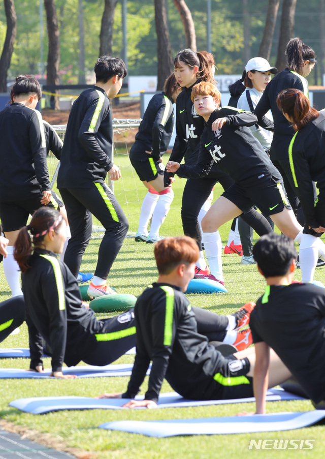◆ 훈련하는 여자축구 대표팀 선수들 ▷ 본, 'Netizen Photo News' 는 가입 필요없이 손님께서도 연결에 넣어두고 날마다 보실 수 있습니다. (저작권 있음) '한국 네티즌본부' ○··· 【파주=뉴시스】 배훈식 기자 = 7일 오후 경기 파주시 파주NFC에서 열린 2019 FIFA 프랑스 여자월드컵 대비 국가대표 최종 훈련에 참가한 선수들이 공식 훈련을 하고 있다. dahora83@newsis.com |