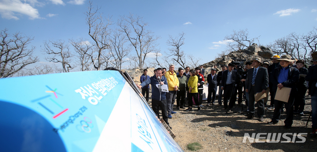 ◆ 가리왕산 둘러보는 위원들 ▷ 본, 'Netizen Photo News' 는 가입 필요없이 손님께서도 연결에 넣어두고 날마다 보실 수 있습니다. (저작권 있음) '한국 네티즌본부' ○··· 【정선=뉴시스】김경목 기자 = 가리왕산 합리적 복원을 위한 협의회(위원장 이선우) 위원들이 7일 오후 강원도 정선군 가리왕산 하봉에서 알파인 경기장 설치를 위해 깍여 나간 산림을 바라보고 있다.