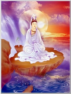 마치 해변에 위치한 보타락가산의 물위의 달처럼 아름다운 관음이 현신하시듯 하다고 한다.