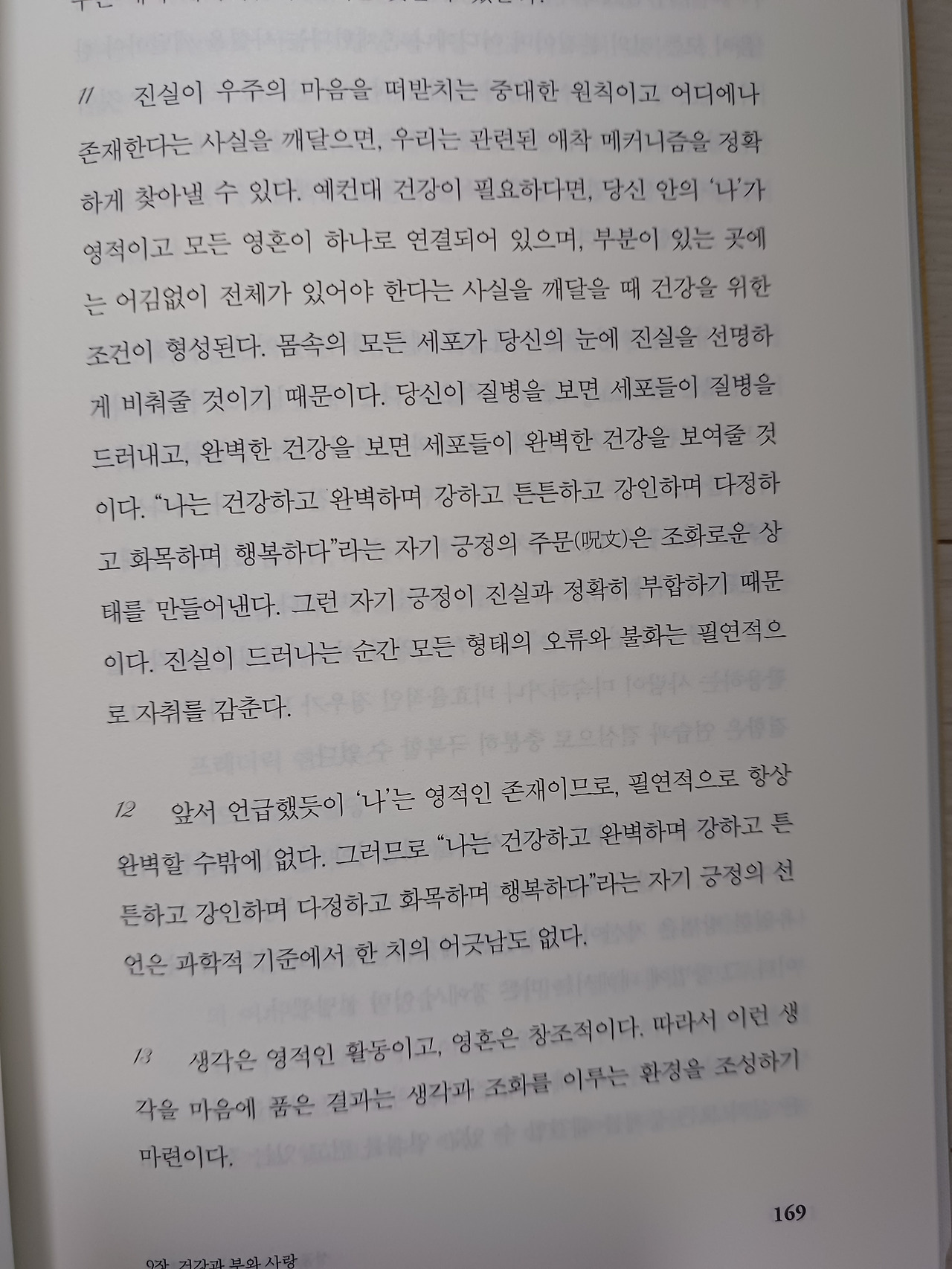 "나는 건강하고 완벽하며 강하고 튼튼하고 강인하며 다정하고 화목하며 행복하다"