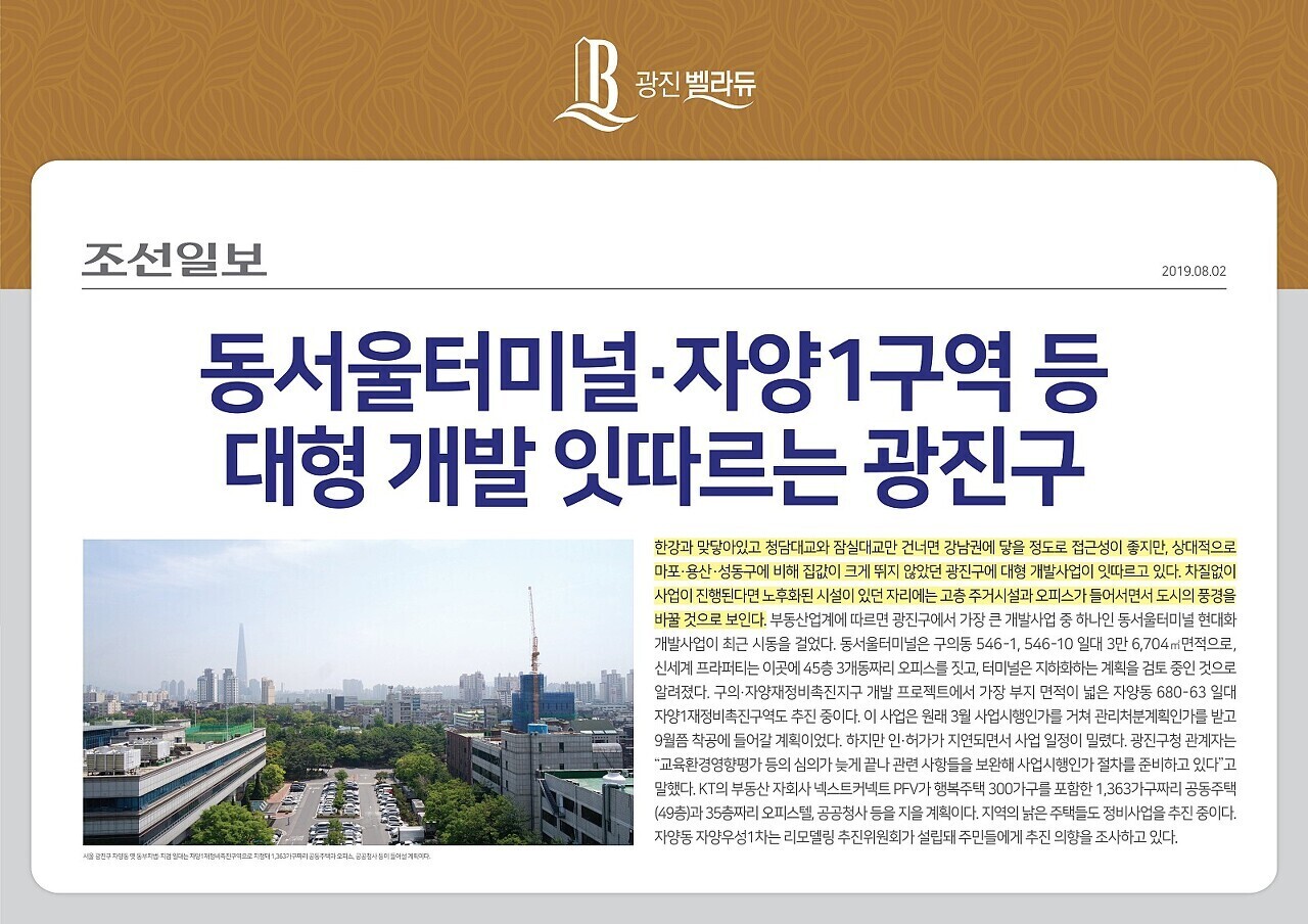 ■ 우수한 교통 장점 교통 여건도 상당히 우수해서 지하철 5·7호선 환승역인 "군자역"과 7호선 "어린이 대공원역"이 도보 10여분 대 위치 , 대중교통 이용의 편의성이 상당히 뛰어나며 동일로, 동부 간선도로, 강변북로, 올림픽대로 등 다양한 도로 교통망 확보 ■ 편리한 주변 인프라 및 우수한 교육 인프라 - 롯데 백화점, 이마트, 스타시티몰, 커먼그라운드, 건국대병원, 광진구청 포진 - 건대사대부 중,고, 자양중고, 세종대, 건국대 등 명문학교 및 바로 앞에 위치한 세종초, 장안초 및 단지 내 별동 학습관, 작은도서관 등 초·중·고·대에 이르는 명품학군이 형성된 입지로 자녀를 둔 30,40 세대의 높은 관심 UP - 수세권, 숲세권 입지로 쾌적한 생활까지 실현. 어린이 대공원, 서울 숲, 뚝섬 한강 시민공원, 중랑천 산책로 등 다양한 자연 환경이 인근에 위치 해 조망이 우수하며 자전거, 산책 등 여가생활 즐기기 용이 ■ 다수의 강력한 개발 호재로 인한 미래가치 UP~ 기대 ! 📣 첫번째 -건대입구~능동로 일대 대규모 캠퍼스 타운 조성, 구의·자양 재정비 촉진지구 개발, 중랑물 재생센터 공원화, 동서울터미널 현대화 사업, 성수 IT 개발 진흥지구 - 성수 비지니스 타운 등의 다수의 강력한 개발 호재가 예정되어 있어 주거환경 개선 및 신규 인구 유입에 따른 집값 상승도 기대. 📣 두번째 -해당 단지 주변에 2026년 완공 예정인 현대차 글로벌 비지니스 센터(GBC) 개발 사업의 강력한 호재 - 롯데월드 타워보다 높게 세워지는 GBC는 통합사옥, 전시 컨벤션 시설, 공연, 호텔시설 등으로 구성된 지하 6층 ,지상 105층으로 형성 - 준공 후 예상되는 경제 효과는 생산유발 253 조 1,000 억원, 고용창출 113 만 7,000 명, 세수 증가 6,000 억원 이상으로 주변 부동산 시장에 영향을 미칠 것으로 보임 ■ 현장 특징 및 장점 - 중소형 이지만 중대형 못지 않은 공간감과 최첨단 기술을 접목한 뛰어난 설계 및 헤파 필터를 적용한 전열 교환식 환기 시스템으로 미세먼지 등 외부 오염물질 유입 차단 - 세대별로 설치된 패널이나 스마트폰을 통해 난방, 보완, 승강기 호출, 에너지 관리가 가능한 IoT 시스템을 기본으로 지능형 스마트 스위치, 지능형 스마트 생활 정보기, 홈네트워크, 원격검침, 택배도착 알림 등의 스마트 시스템을 완비할 예정 - 어린이집, 경로당, 독서실, 실내골프 연습장, 작은 도서관, 카페 테리아&스터디룸, GX 룸, 피트니스센터 등 입주민들의 건강과 라이프 스타일을 고려한 특색 있는 커뮤니티 공간도 마련될 예정 ■ 지역주택 아파트는 지역주택사업 경험이 많고 실제로 지역주택 사업을 성공시킨 " 업무 대행사 " 능력과 경험치가 상당히 중요 " 보라매 자이 트윈시아 아파트 "( 2021 년 2 월 착공 확정) , "서울 숲 2차 아이파크 아파트 "(착공직전 단계) 등 이미 2 건의 지역주택 아파트 사업을 성공시킨 지역주택사업 경험이 많은 업무 대행사인 " (주) 정연 파트너스 " 가 이번 " 광진 벨라듀 지역주택 아파트 " "업무 대행사 " 맡음 "(주) 정연 파트너스" 가 성공시킨 지역주택 아파트 사업들 📣 첫번째 : "서울 숲 2차 아이파크 아파트 "(착공직전 단계)는 분양가 대비 현재 10억 이상 상승 📣 두번쨰 : "보라매 자이 트윈시아 아파트 "(2월 착공 확정)는 분양가 대비 현재 6억 이상 상승 상기 2건의 지역주택 아파트 사업을 성공시킨 경험 많은 업무 대행사인 "(주) 정연 파트너스 " 가 책임지고 진행하는 지역주택 아파트 사업으로 현재 " 광진구 군자역 벨라듀 아파트" 조합원 모집 중 군자동 최초 29 층 " 초고층 직주 근접형 "광진 벨라듀" 아파트 "모집이 시작 되면서 해당 아파트가 뛰어난 미래가치를 선점하고 있어 실 수요자들의 엄청난 관심이 집중되고 있습니다. |